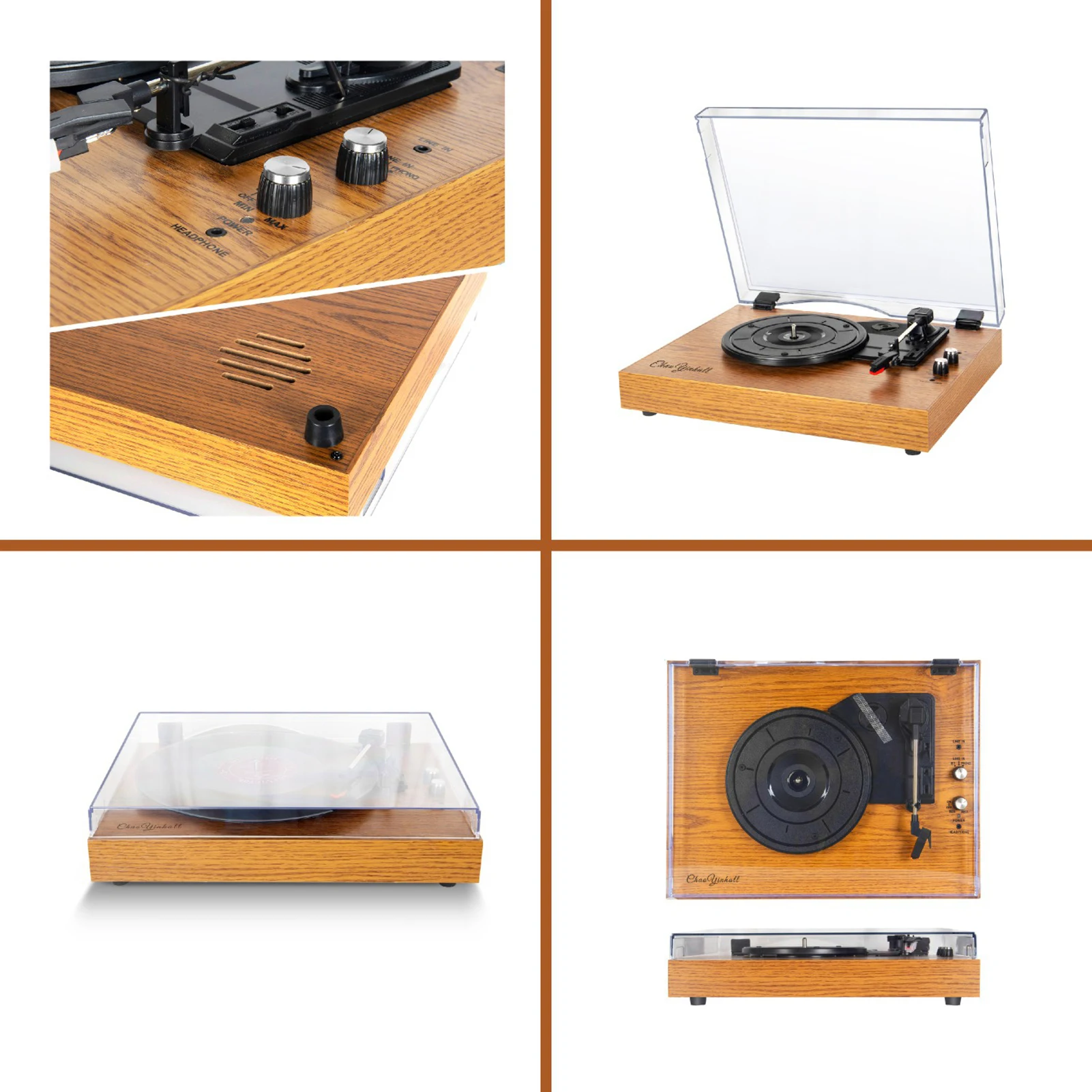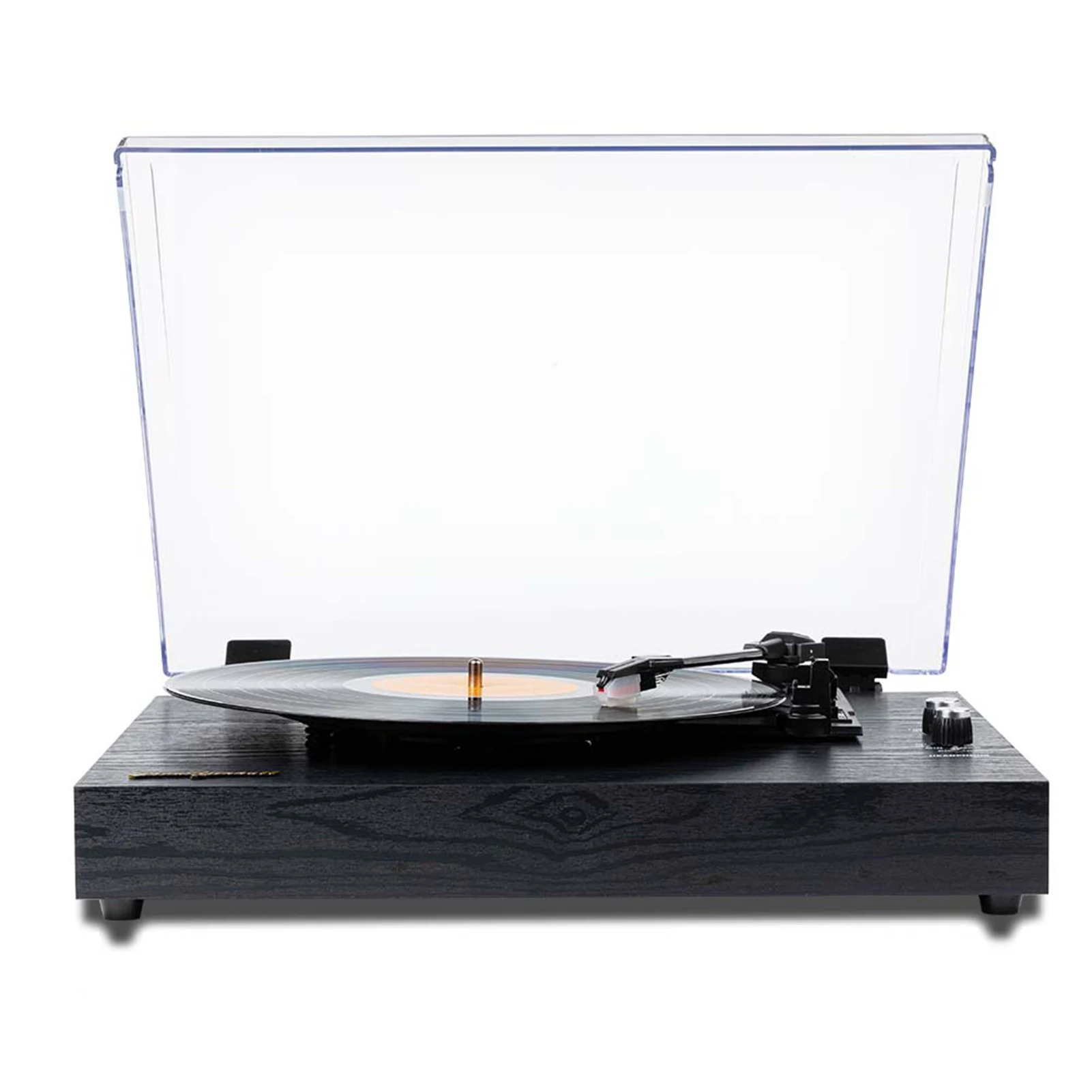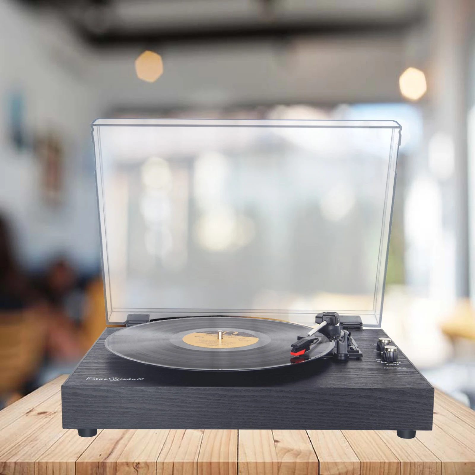 Оно имеет винтажное деревянное основание, ретро турнтабле, хороший пылезащитный кожух воркманьшип, и руку пикапа с баром подъема и функцией автоматического ограничителя.
