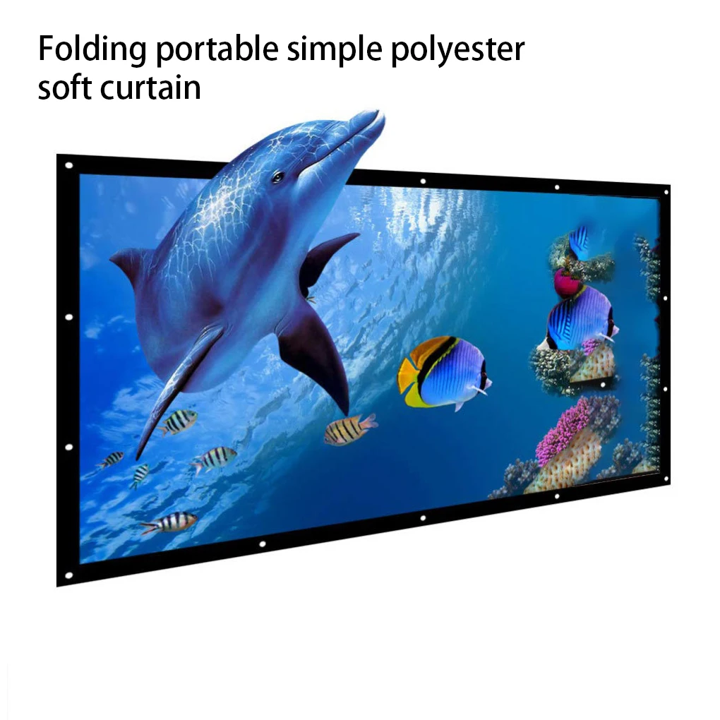 Projector Curtain Reflective HD 16 9 Anti-Light Projection Screens Folding Indoor Metal Hook for Theater 100 inch