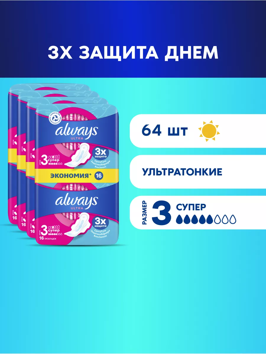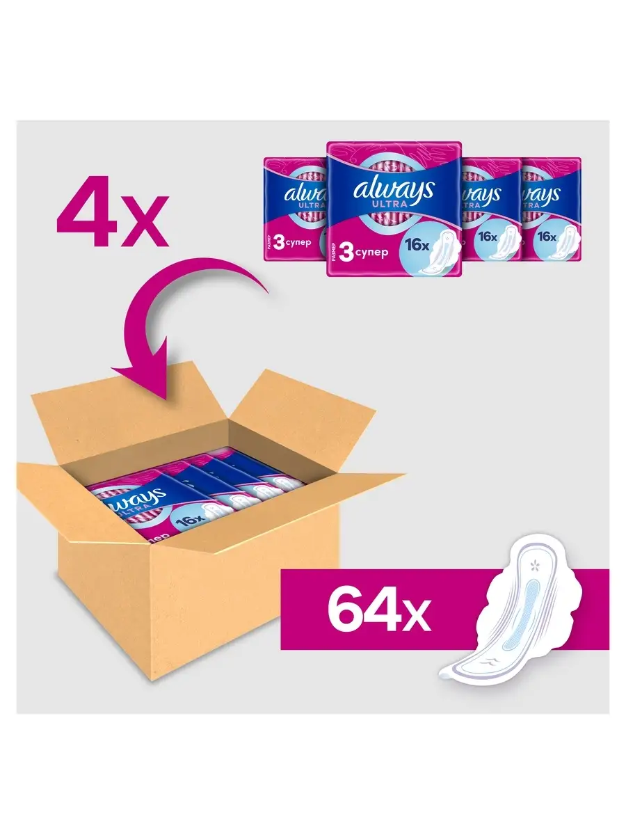 Прокладки гигиенические Ultra Супер 3 размер, 64 шт.
