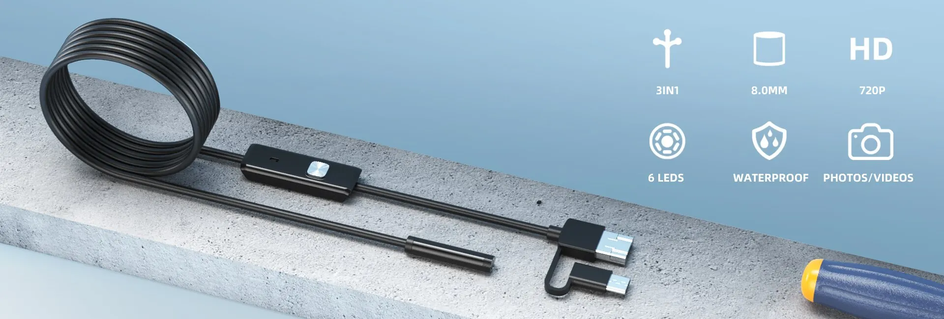 Этот эндоскоп Android-это 1 новый тип электронных продуктов. Преимущества этого продукта: небольшие размеры, легкий вес, диаметр корпуса передней камеры 5,5 мм, а в средней части установлен блок управления (Отрегулируйте свет и делайте снимки. Примечание. Кнопка камеры поддерживается только при использовании компьютера. Телефон может делать снимки с помощью программного обеспечения), вы можете регулировать яркость шести светодиодных фонарей, захватывать изображение и делать снимки непосредственно в телефоне Android, вы можете записывать, запишите весь процесс осмотра, и облегчите последующие замечание и анализ.