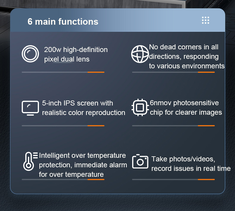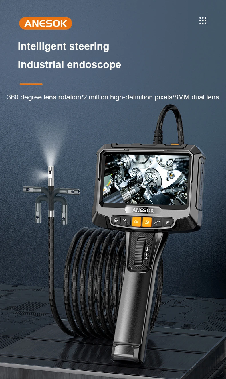 2. [Большой 5-дюймовый экран]: корпус эндоскопа усилен металлом для предотвращения падений и дождя, что делает его пригодным для работы на открытом воздухе.