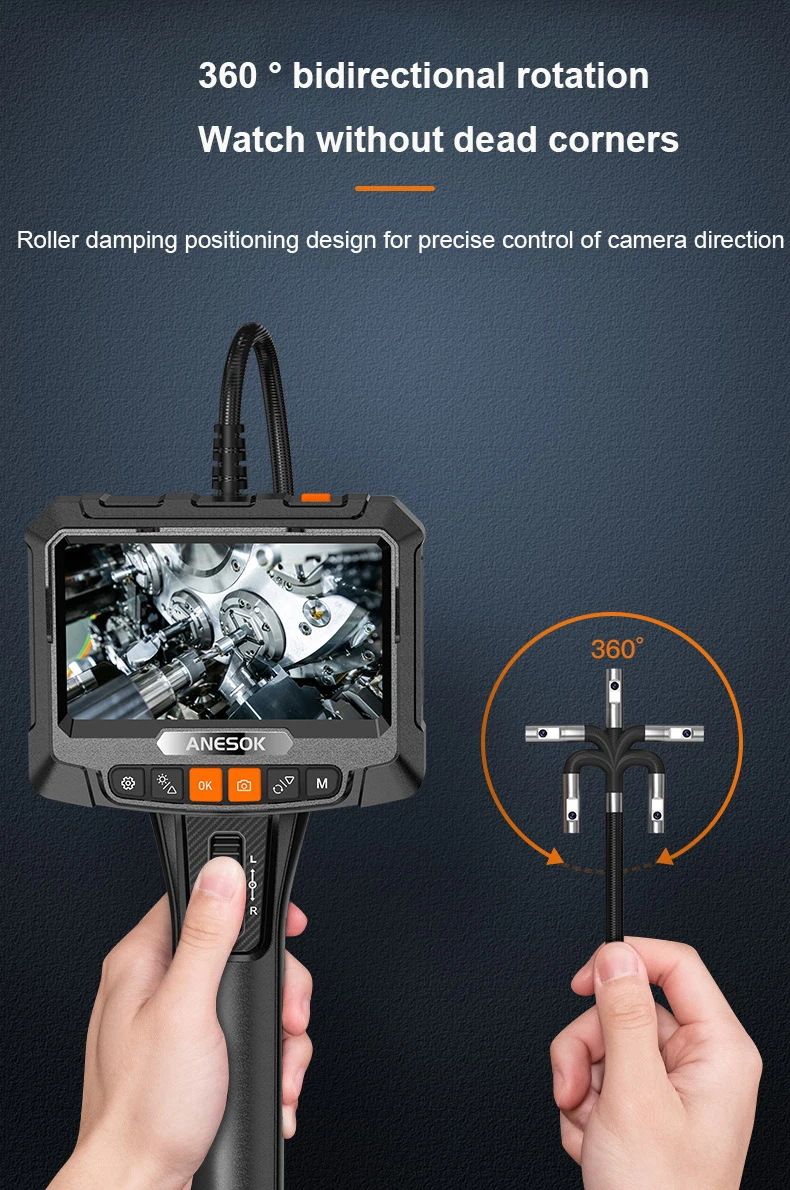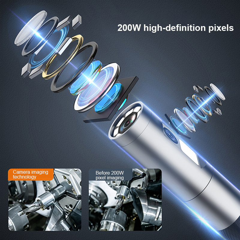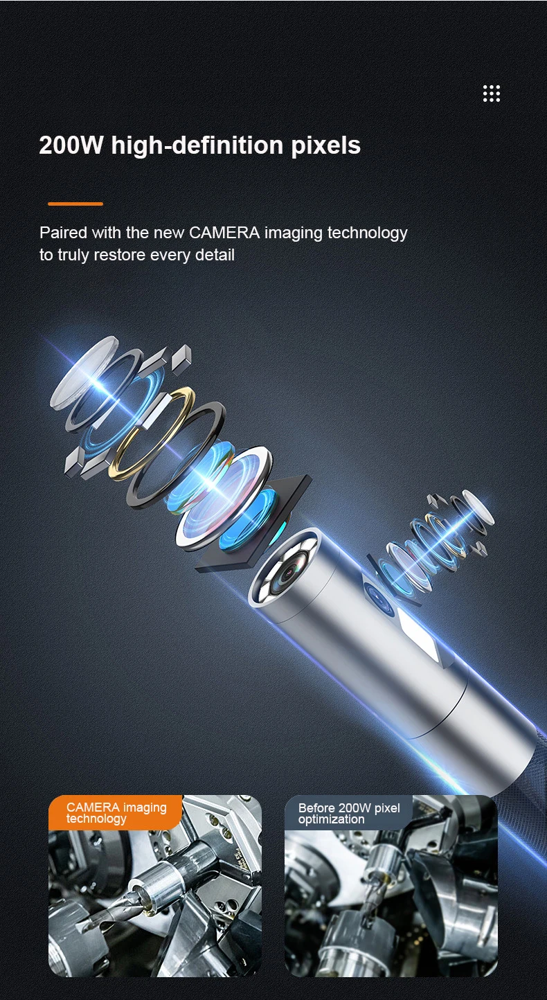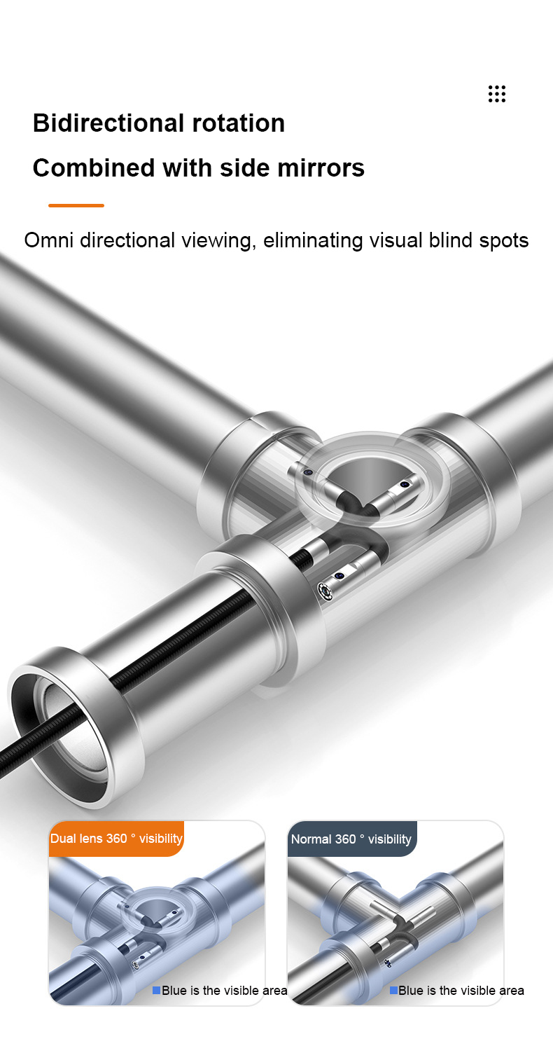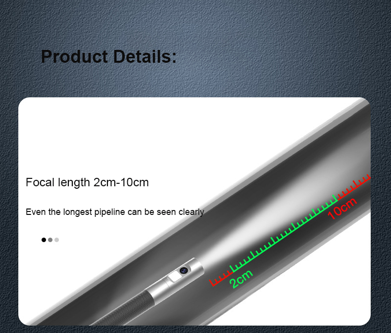 1. 【Объектив камера】: Инспекционная камера высокой четкости-это камера, предназначенная для более широкого поля зрения. Легко переключайтесь между двумя 180-градусными камерами на 360 градусов. При фокусном расстоянии 1-4 дюйма (3-10 см) можно получить самое четкое изображение.
