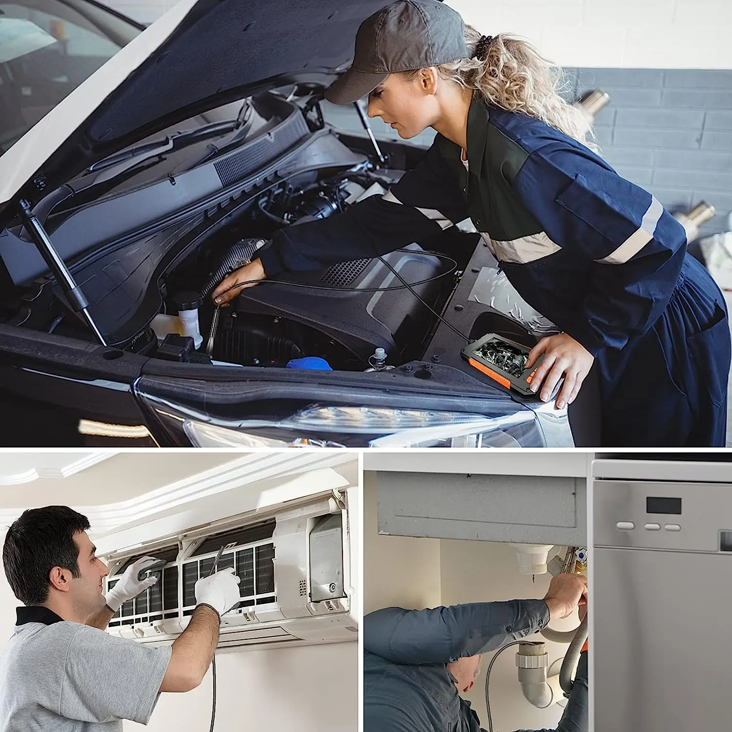 Его можно использовать для осмотра автомобилей, осмотра трубопроводов, осмотра кондиционера, поиска объектов и т. Д. Это домашний и промышленный эндоскоп.