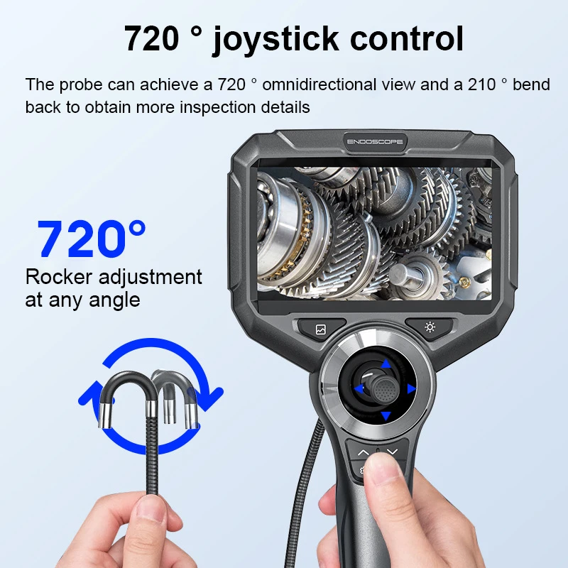 Управление джойстиком 720 °: джойстик 720 ° можно регулировать под любым углом, что позволяет зонду обеспечивать панорамный обзор 720 ° и изгиб 210 ° назад для получения дополнительной информации о проверке.