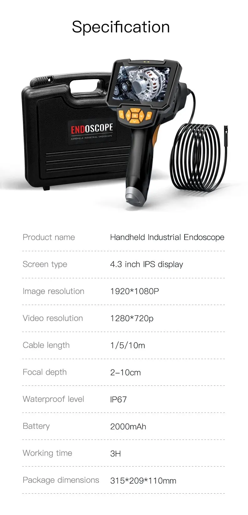 Промышленный эндоскоп с ЖК-дисплеем 1*4,3 дюйма