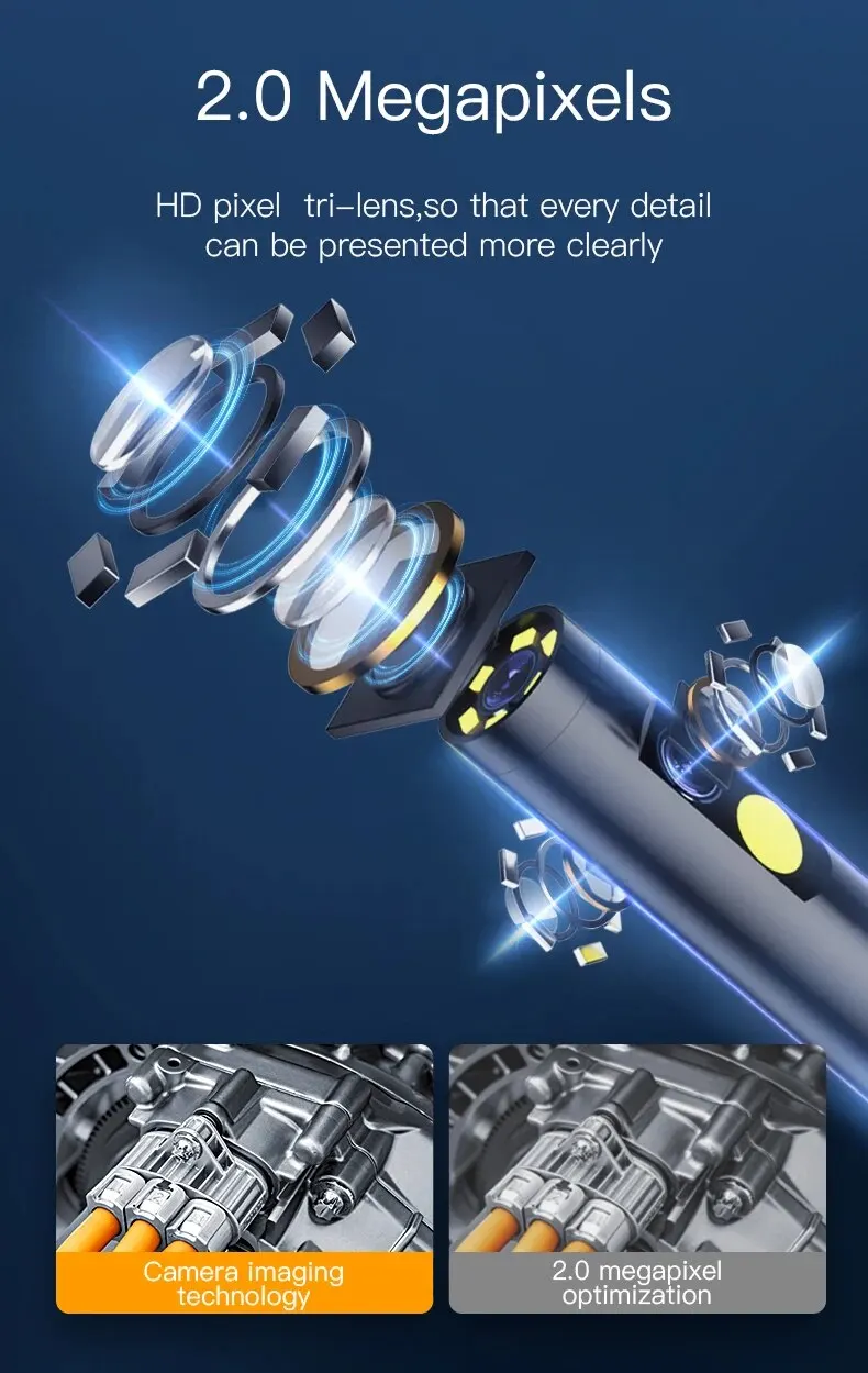 Вторая камера для осмотра HD встроена сбоку от основной камеры для более широкого поля зрения. Легко переключайтесь между двумя камерами с углом обзора 70 градусов, чтобы в общей сложности получить обзор 140 градусов, чтобы смотреть вбок и вперед. Фокусное Расстояние 1-4 дюйма (3-10 см) для максимально резкого изображения.