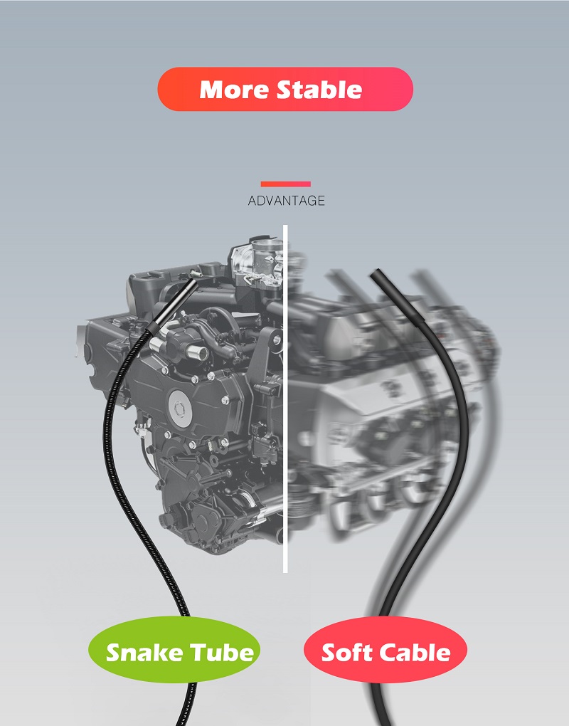 • Полужесткий кабель для камеры и змеиная трубка могут легко создать нужную форму.