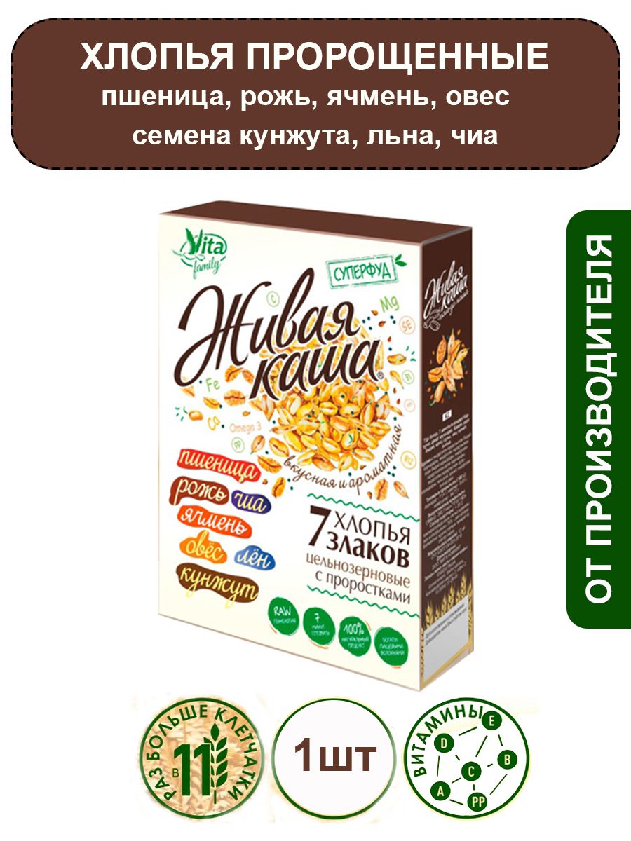 Пророщенные хлопья для завтрака 7 злаков: пшеница, рожь, ячмень, овес, чиа, кунжут, лен Живая каша Vita Family 1шт