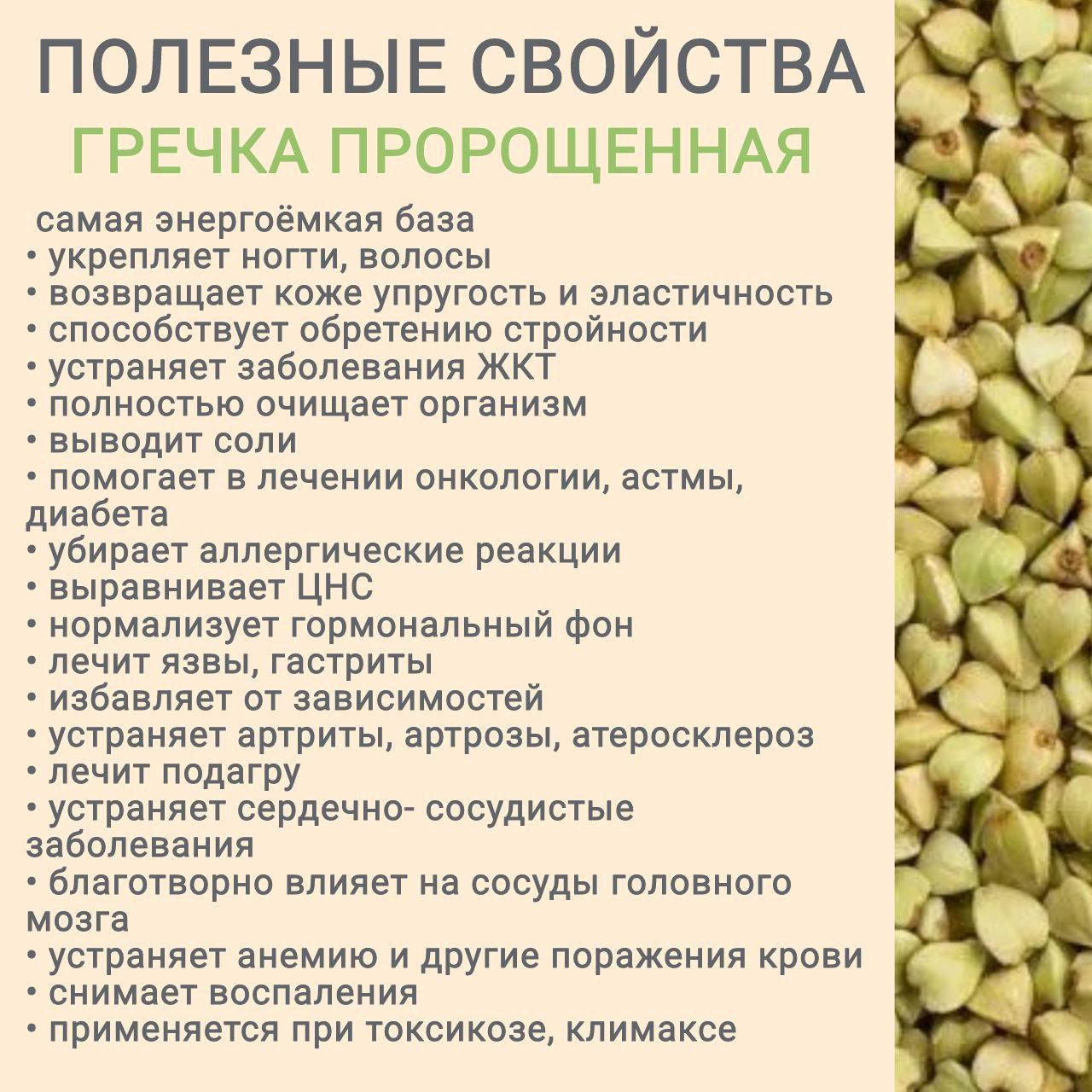 Гречка зелёная пророщенная молотая 100%