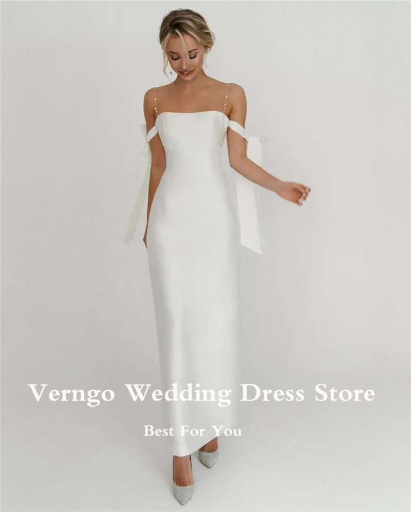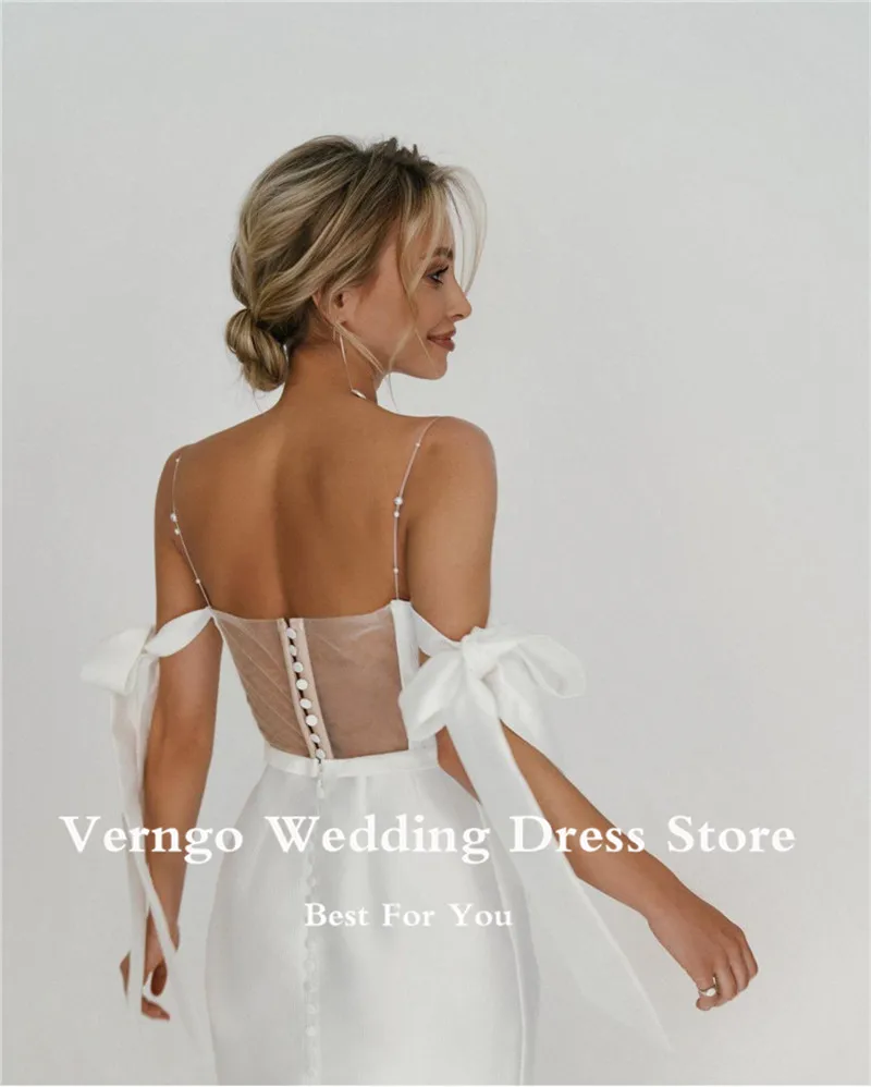 Простое белое платье Verngo без бретелек с бантом на плечах