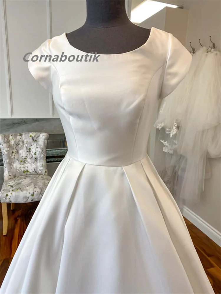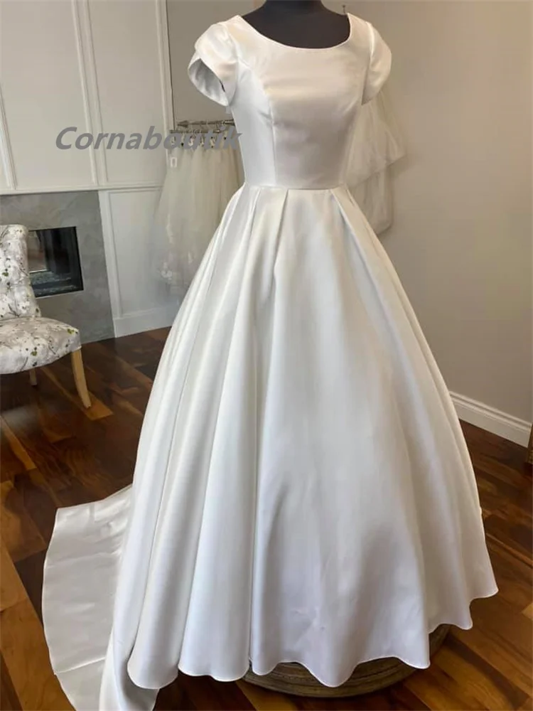 Простое изысканное свадебное платье с вырезом лодочкой и короткими рукавами свадебное платье бальное атласное платье