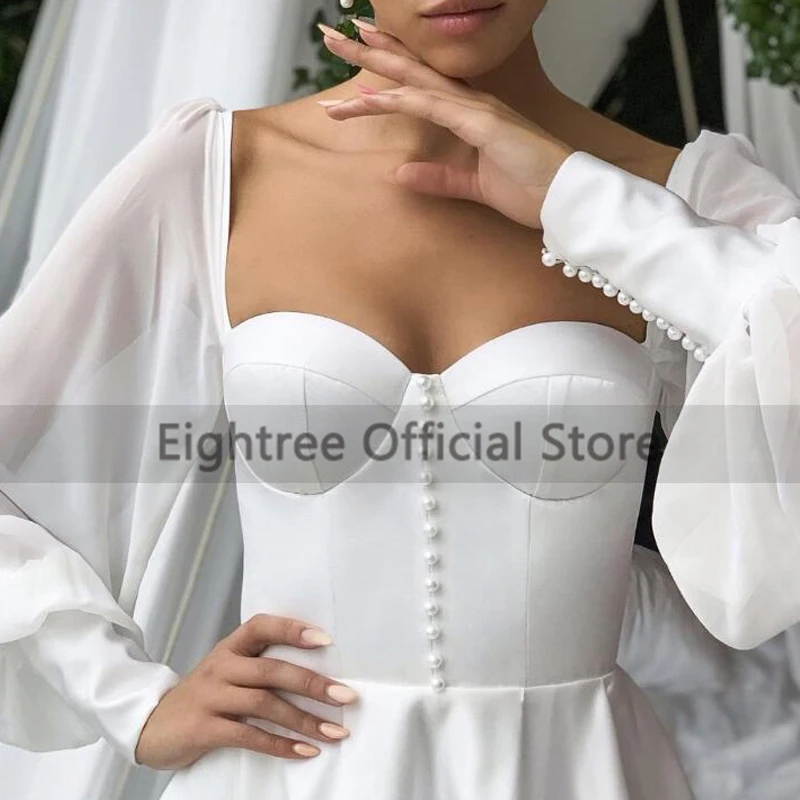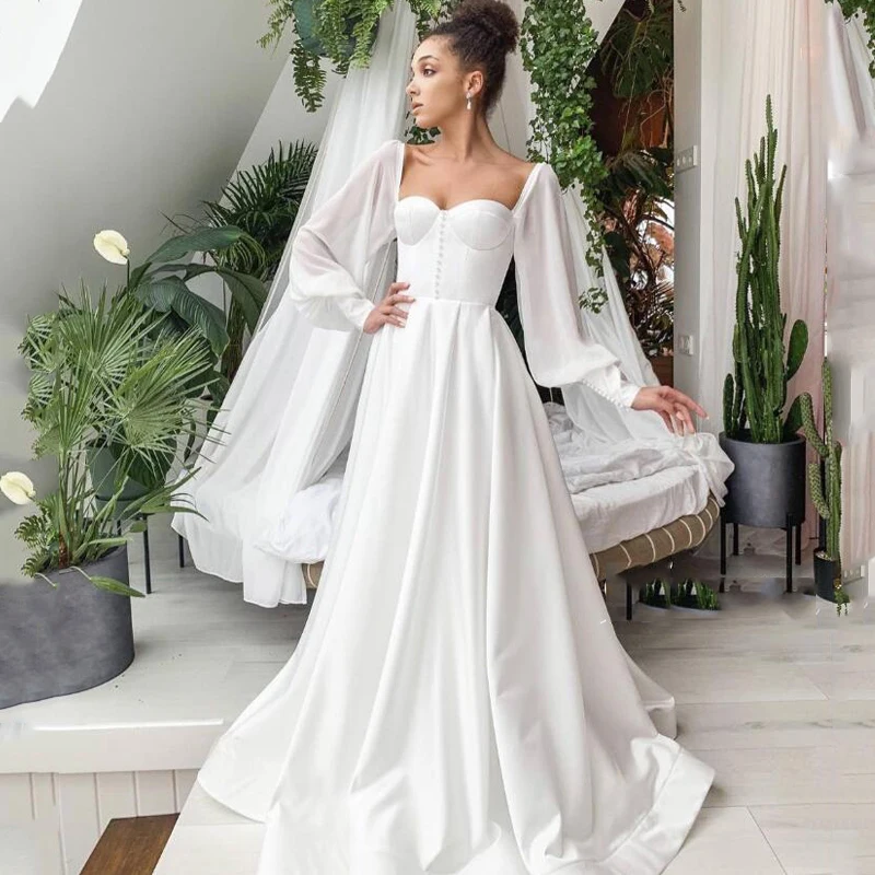 Простое пляжное свадебное платье 2021, платье для невесты с жемчугом, пышными рукавами, а-силуэт, в стиле бохо, белое свадебное платье, индивидуальный пошив