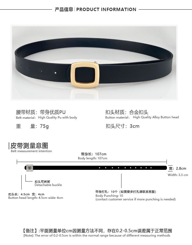 Простой квадратный женский ремень в Корейском стиле, новый универсальный аксессуар с черной пряжкой из сплава