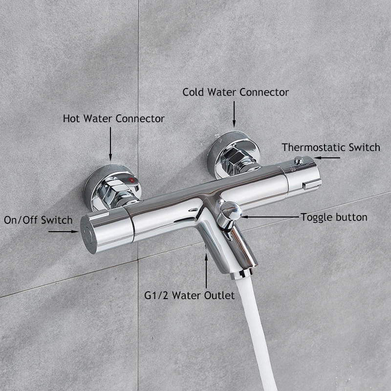Простой термостатический душевой кран для ванной комнаты, термостатический смеситель, кран для горячей и холодной ванной комнаты, смесительный кран, смеситель для ванной