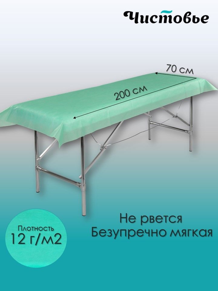 Простыни одноразовые 70х200 80 шт в рулоне с перфорацией Чистовье / пеленка одноразовая/на кушетку/для массажа/подстилка Спанбонд Мятный