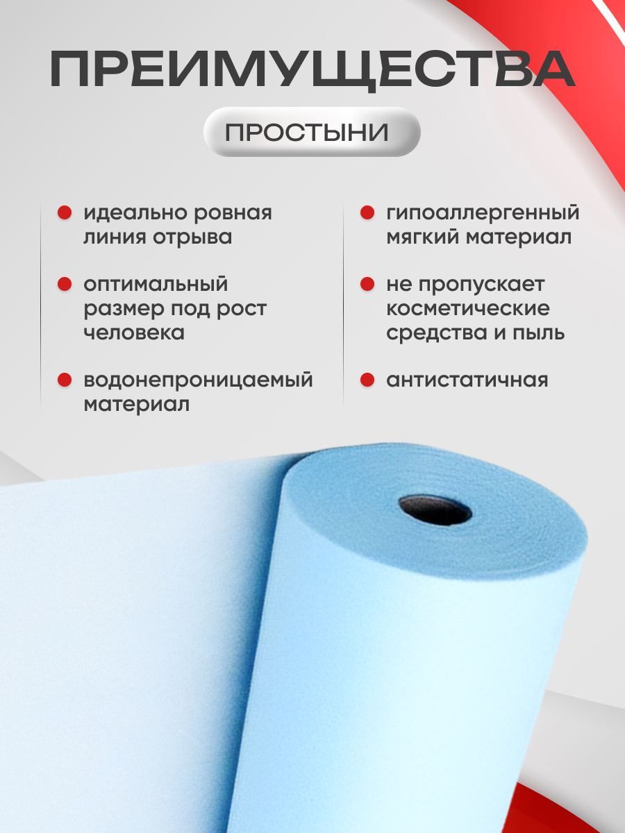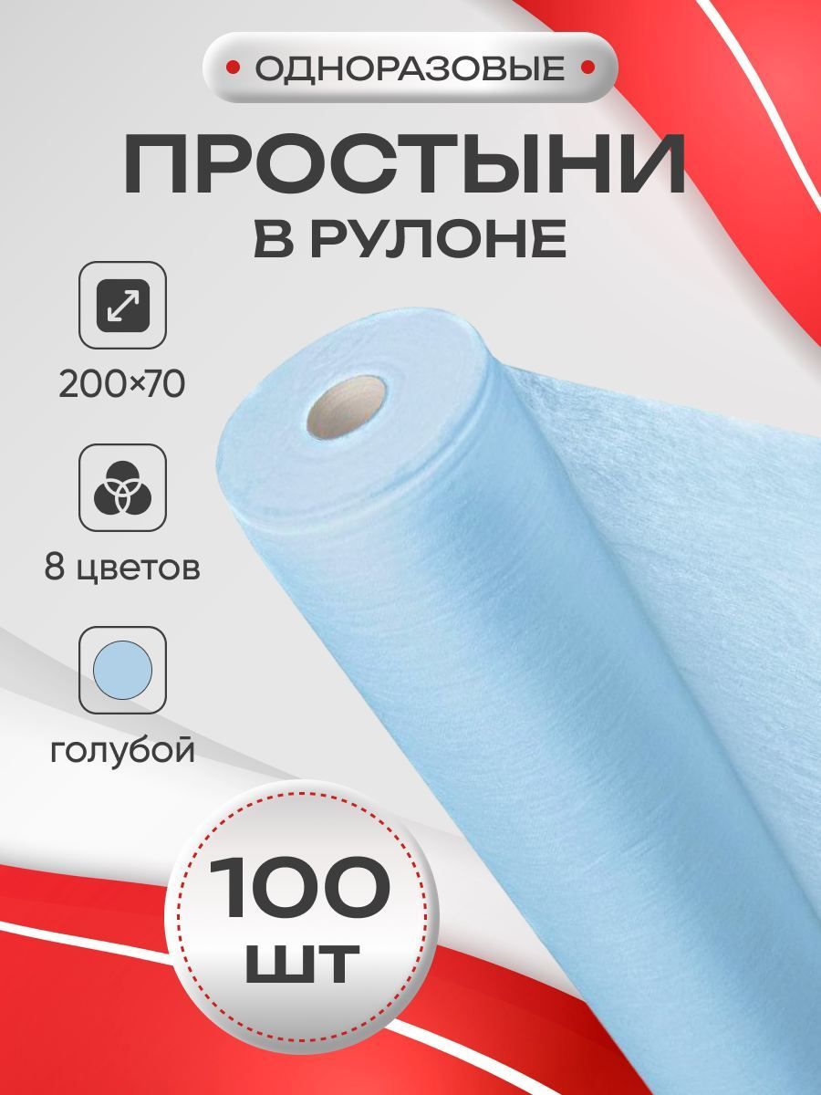 Простыни одноразовые 70х200 см, 100 шт. в рулоне, плотность 10 гр., голубые