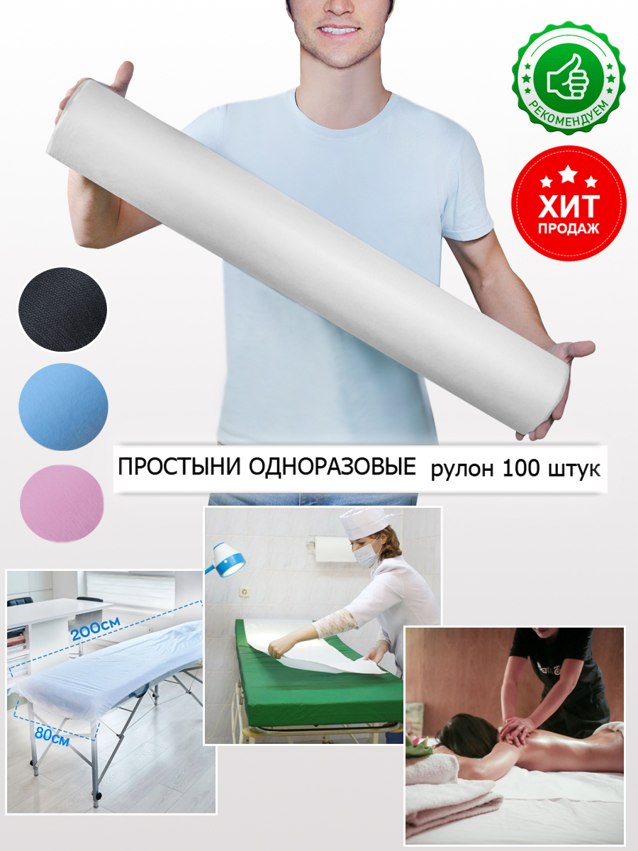 Описание: Одноразовые простыни изготовлены из качественного нетканого материала. Размер - 80*200 см, количество в рулоне - 100 шт. Не накапливают статическое Одноразовые простыни изготовлены из качественного нетканого материала. Размер - 80*200 см, количество в рулоне - 100 шт. Не накапливают статическое электричество, не ворсятся и не имеют запаха. Применяются в косметологических, педикюрных и массажных кабинетах, медицинских учреждениях, саунах, СПА-салонах и других местах, где требуется обеспечение санитарно-гигиенической защиты клиентов. Одноразовые простыни для массажа приятны на ощупь, способны впитывать жидкость и масла, но при этом хорошо пропускают воздух.