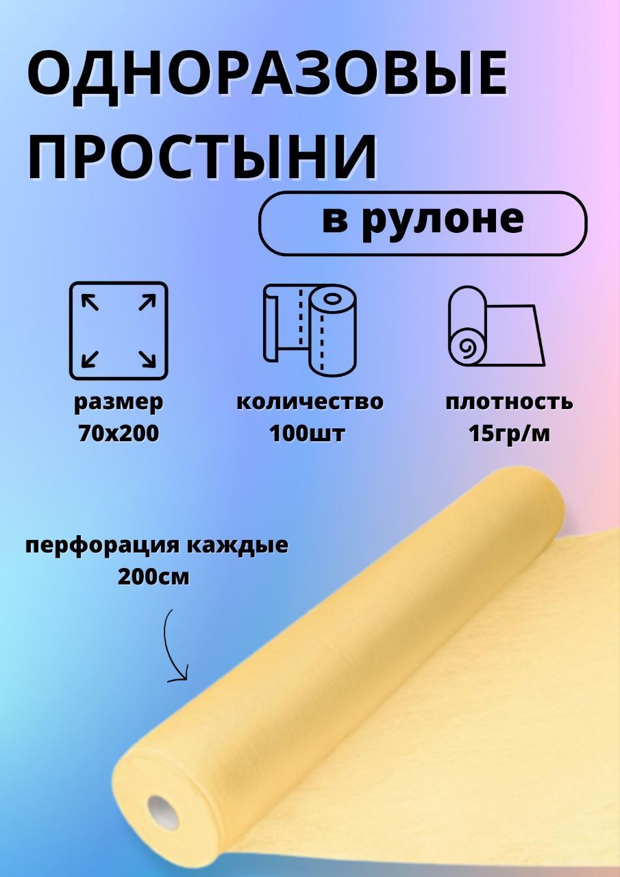 Простыни одноразовые с перфорацией в рулоне желтые, 200х70 см, 100 шт, 15 г/м2