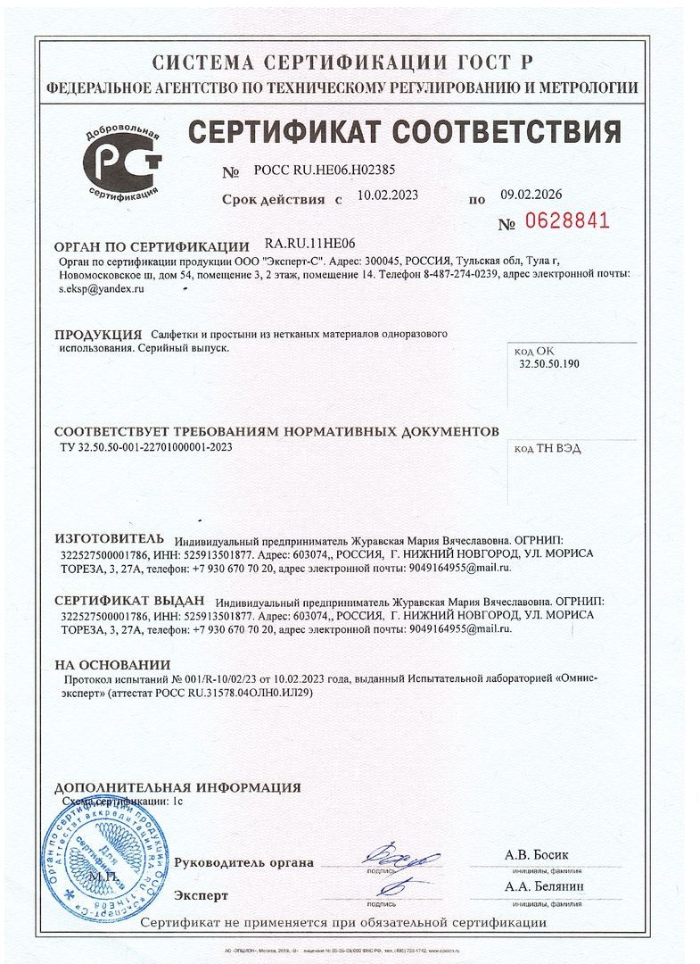 Тип Простыня одноразовая