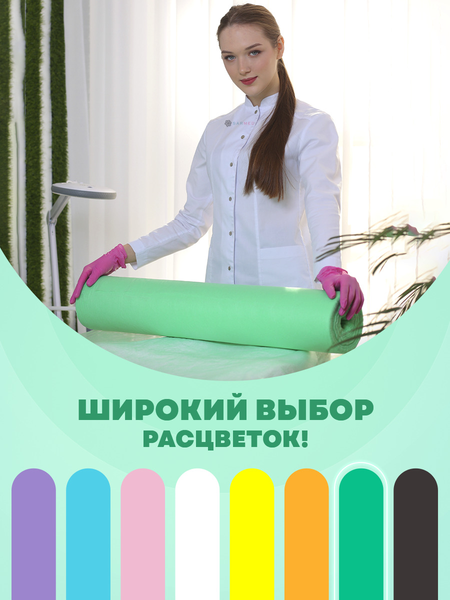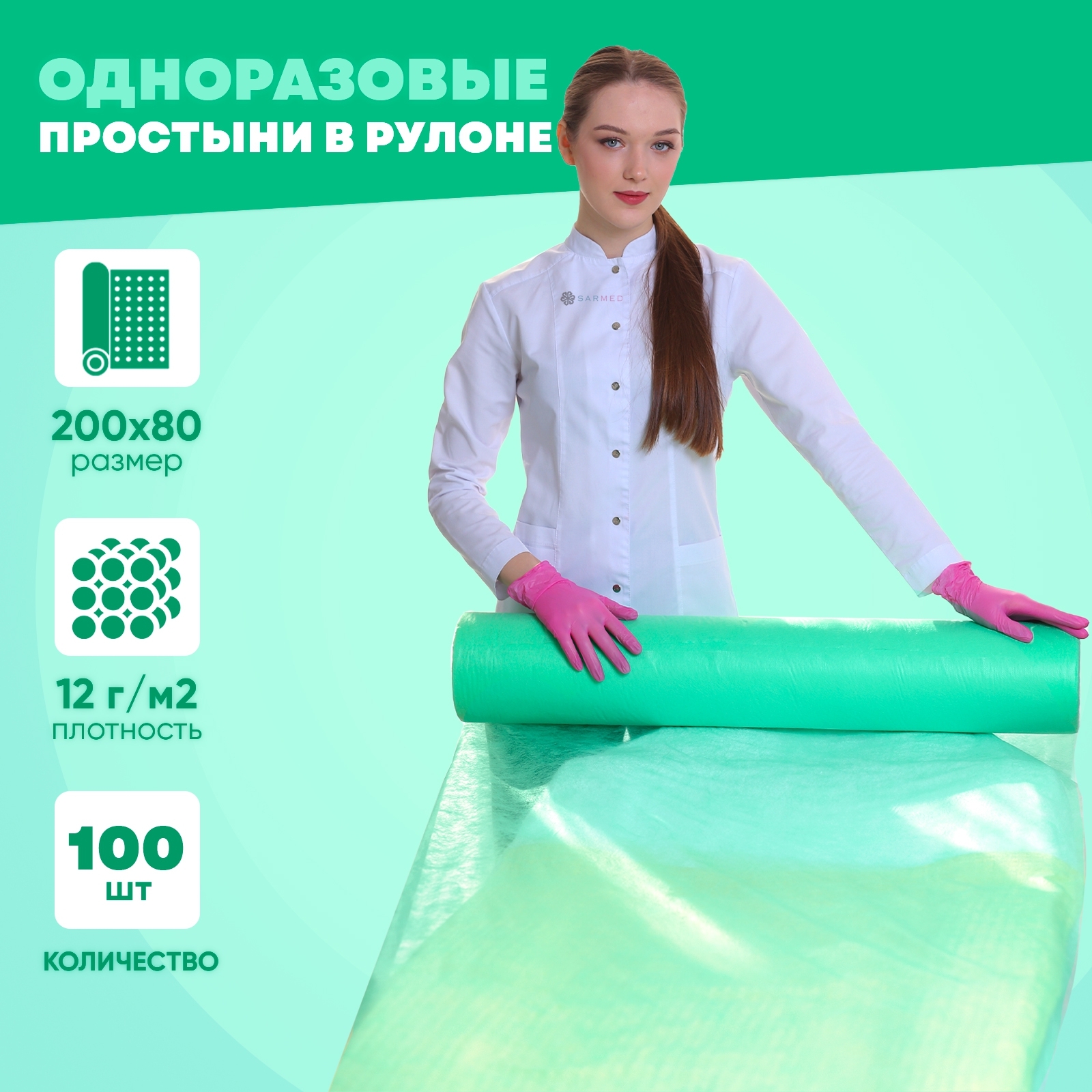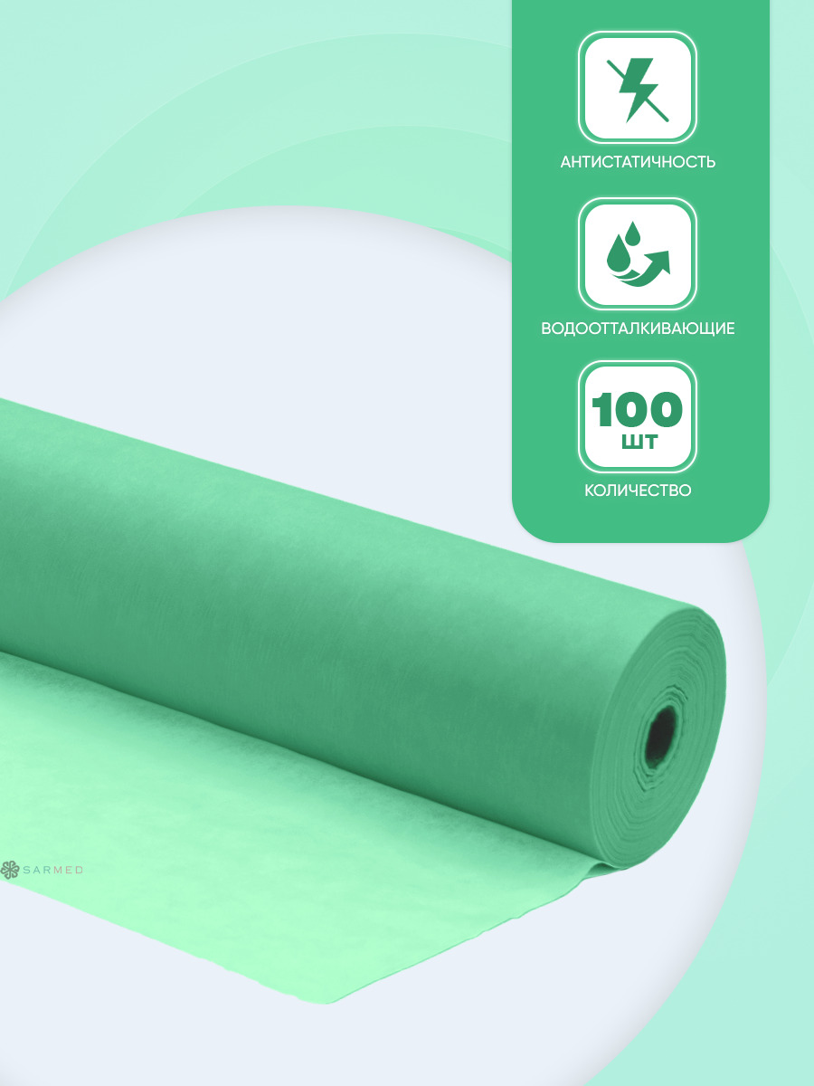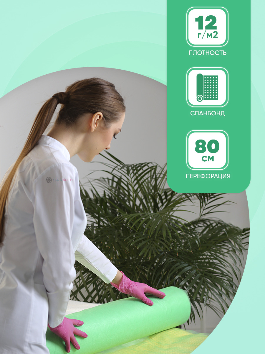 Простыни одноразовые в рулоне SarMed 200х80 100 шт с перфорацией "Эконом" Спанбонд 12 г/м.кв Зеленый / Одноразовые простыни SarMed 80х200 100 шт