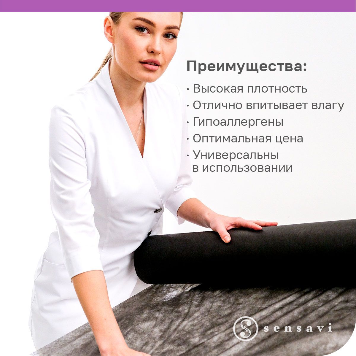 Простыни одноразовые в рулоне sensavi 200х70 50 шт с перфорацией "Комфорт" Спанбонд 18 г/м.кв Чёрный / Одноразовые простыни sensavi 70х200 50 шт