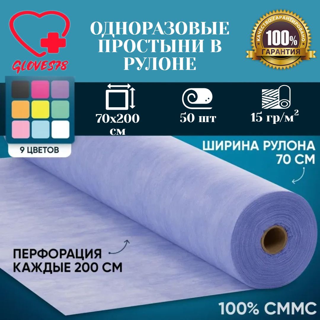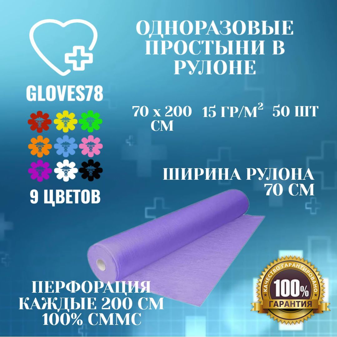 Простыня одноразовая gloves78 Прoстынь в рулоне 70х200 плотность 15, 70 х 200 см