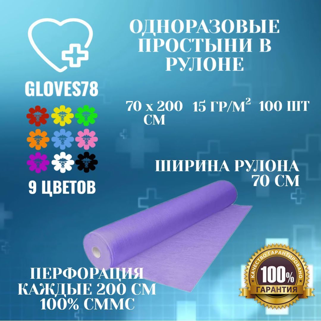 Простыня одноразовая gloves78 Прoстынь в рулоне 70х200 плотность 15, 70 х 200 см