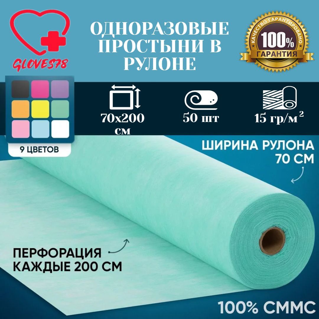 Простыня одноразовая gloves78 Прoстынь в рулоне 70х200 плотность 15, 70 х 200 см