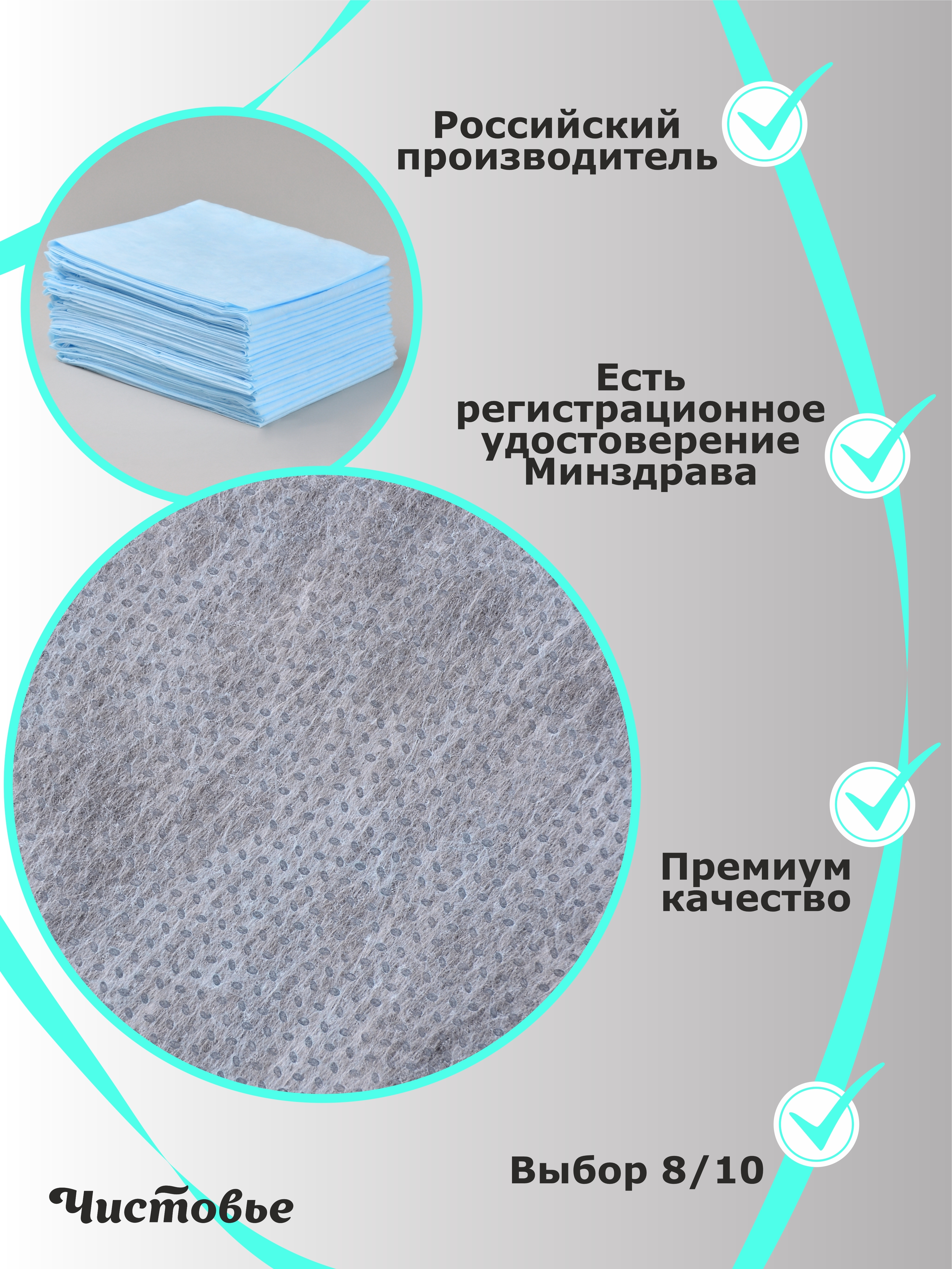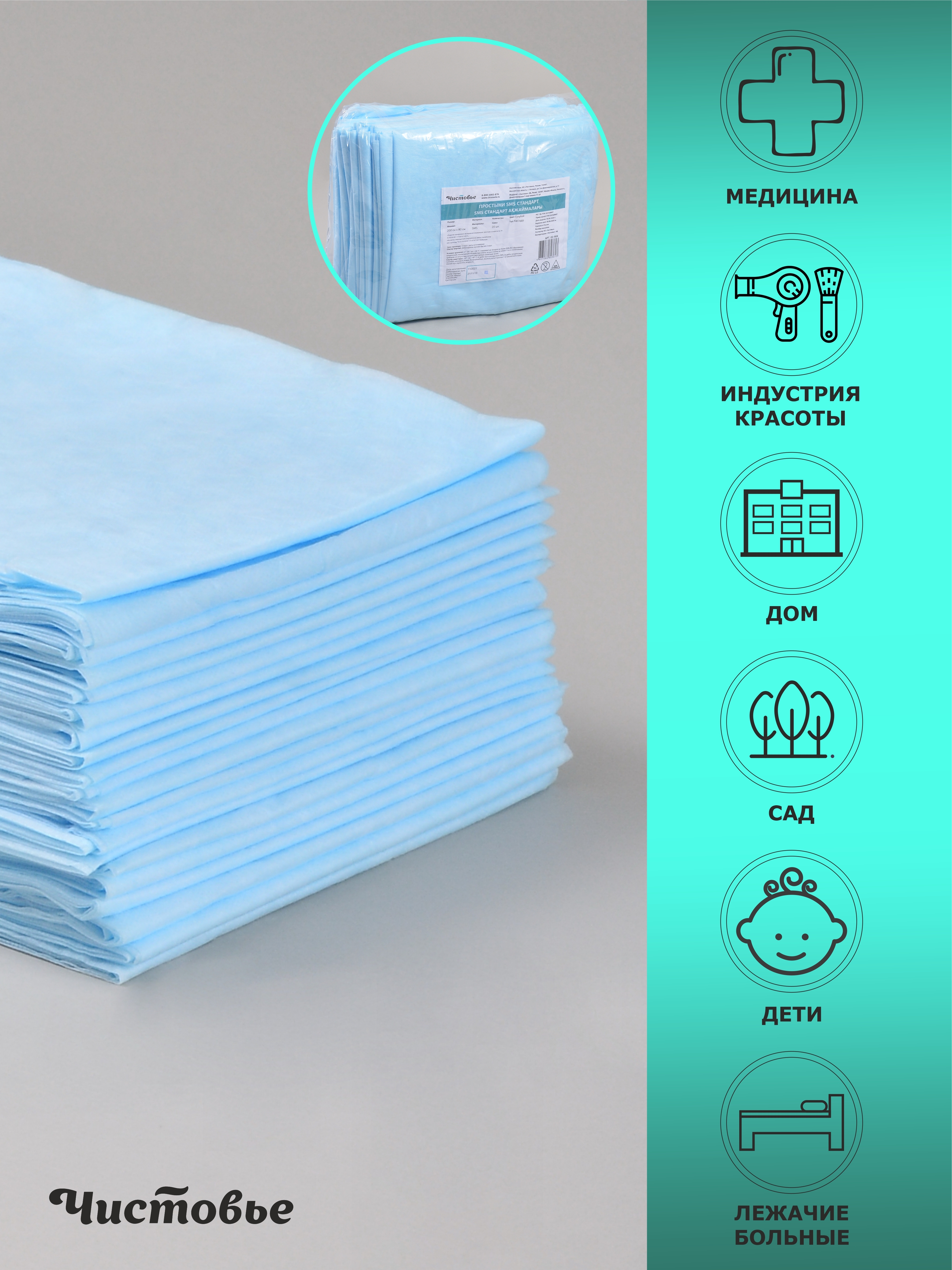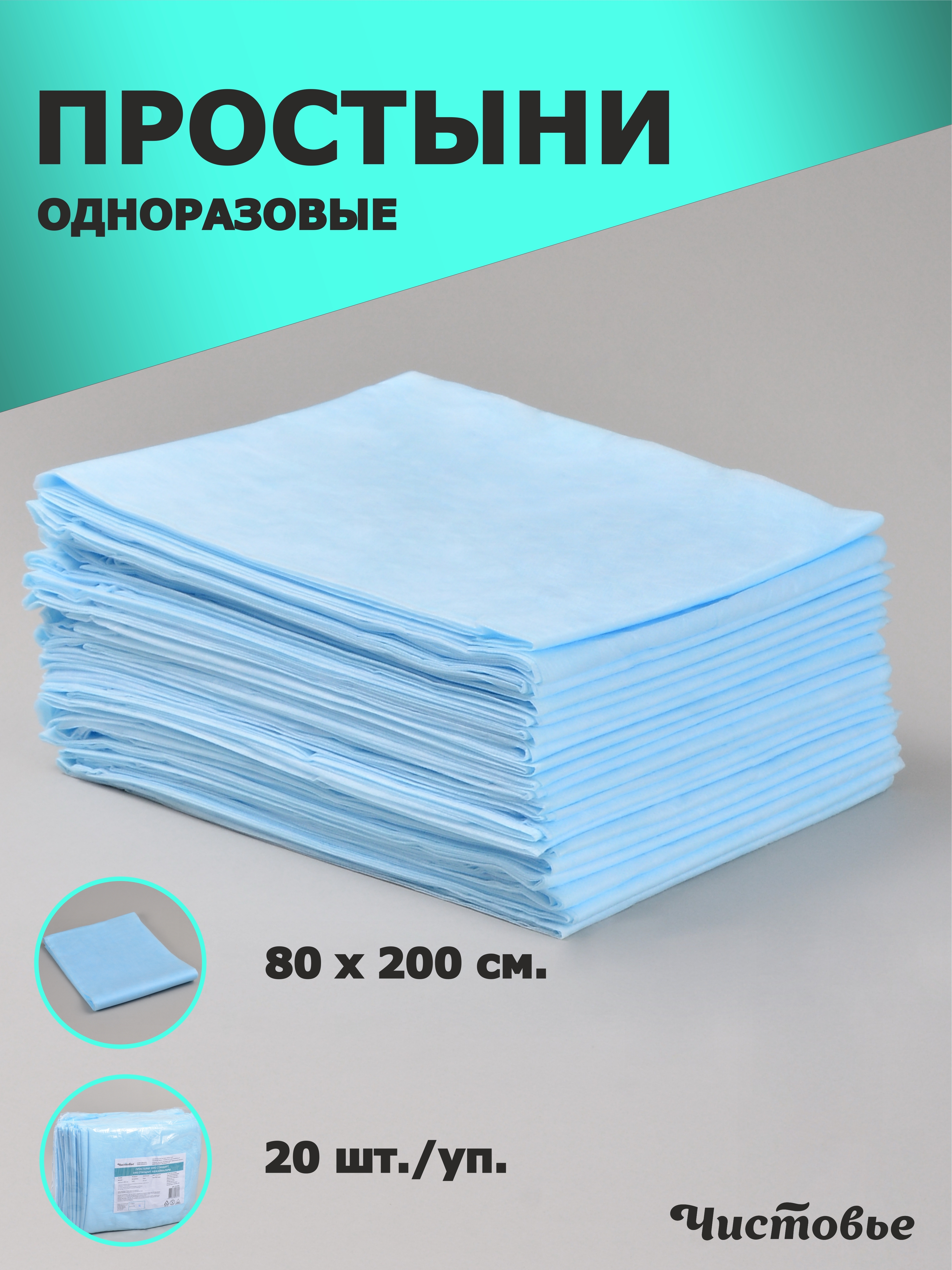 Простыня одноразовая медицинская 80x200 см,ГОЛУБАЯ. для массажа, для салонов красоты,для больных и лежачих, 12 г/м2, Чистовье, 20 шт.