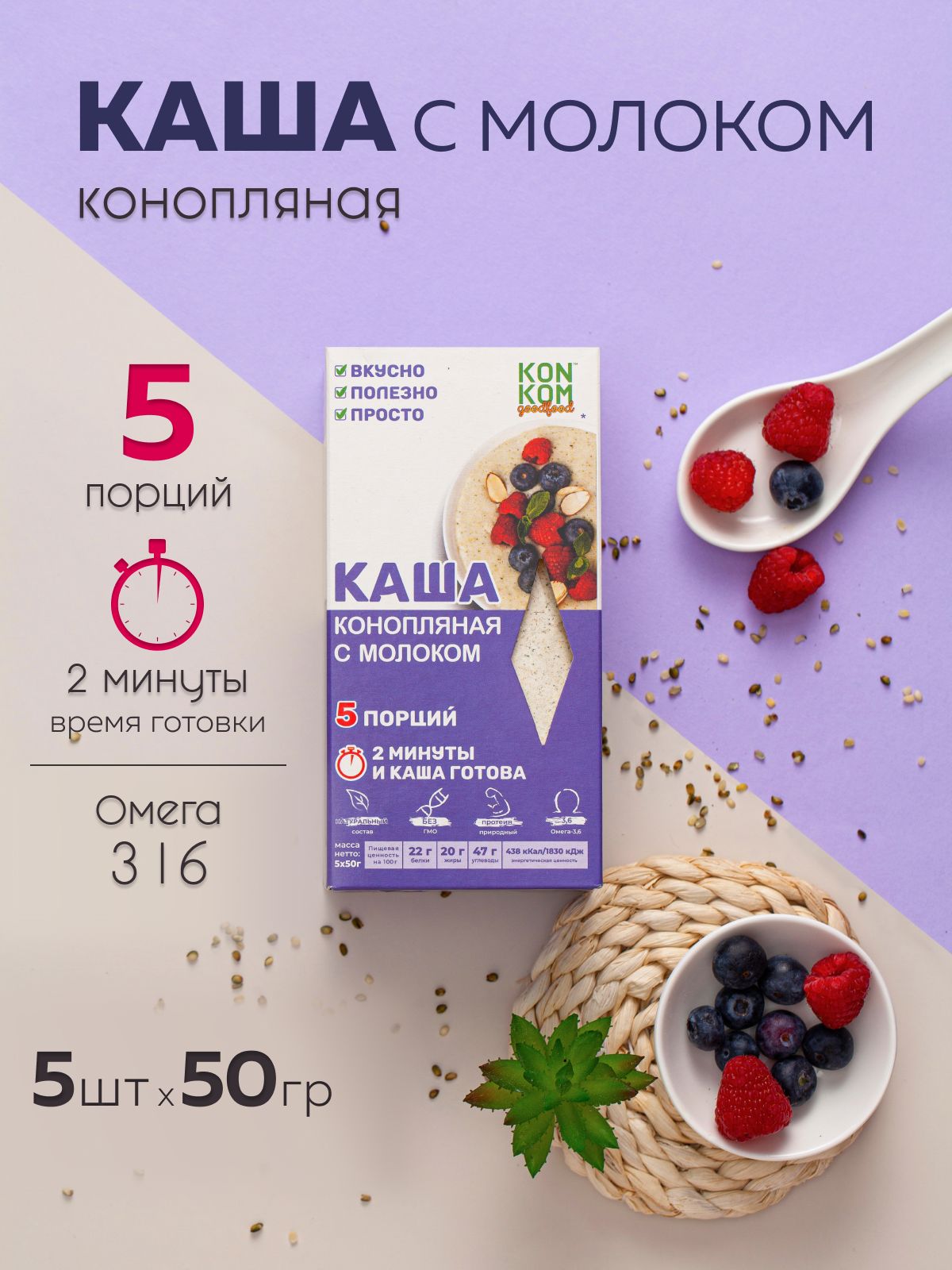 Протеиновая Каша конопляная с молоком, быстрого приготовления, 250 г (5x50г)