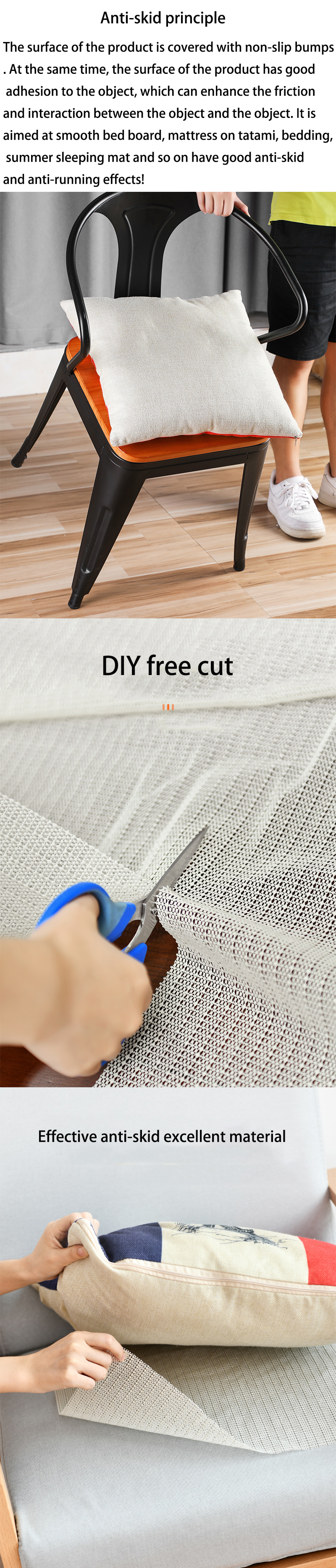 Преимущества: Этот продукт непосредственно помещается под предмет, чтобы предотвратить скольжение. Не прилипает, не повреждает пол матраса, плиточный матрас, легко использовать повторно.
