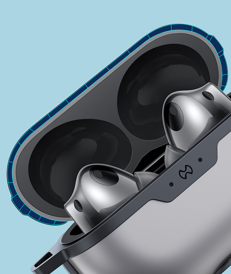 Вам не нужно снимать чехол, чтобы зарядить наушники от беспроводного зарядного устройства.