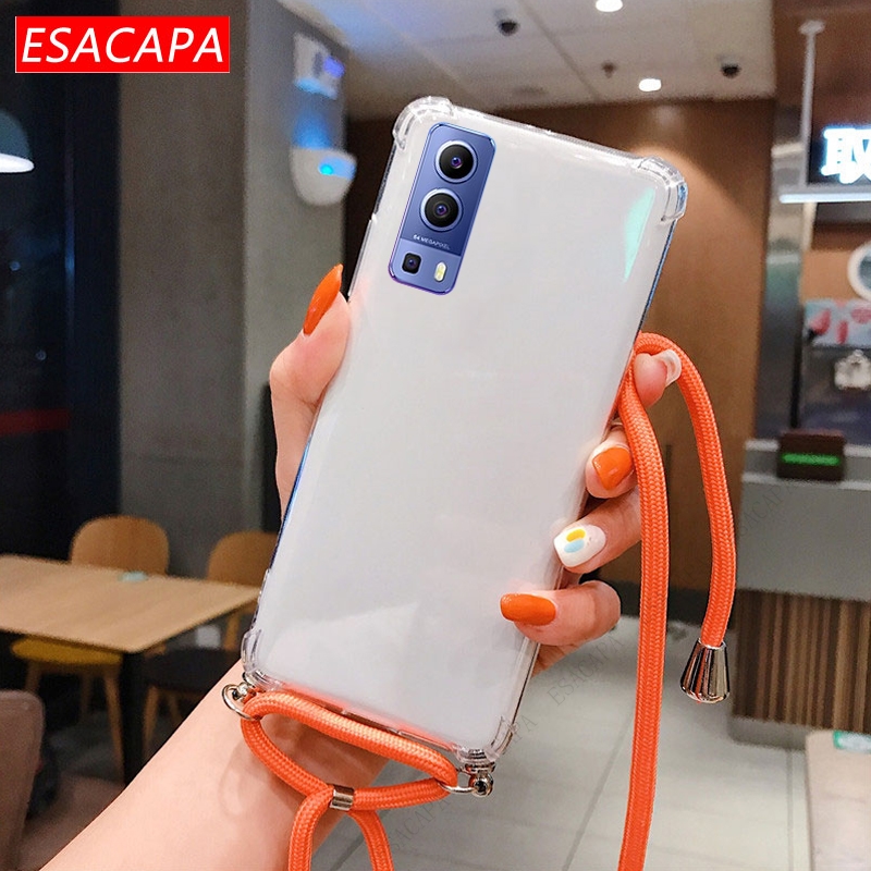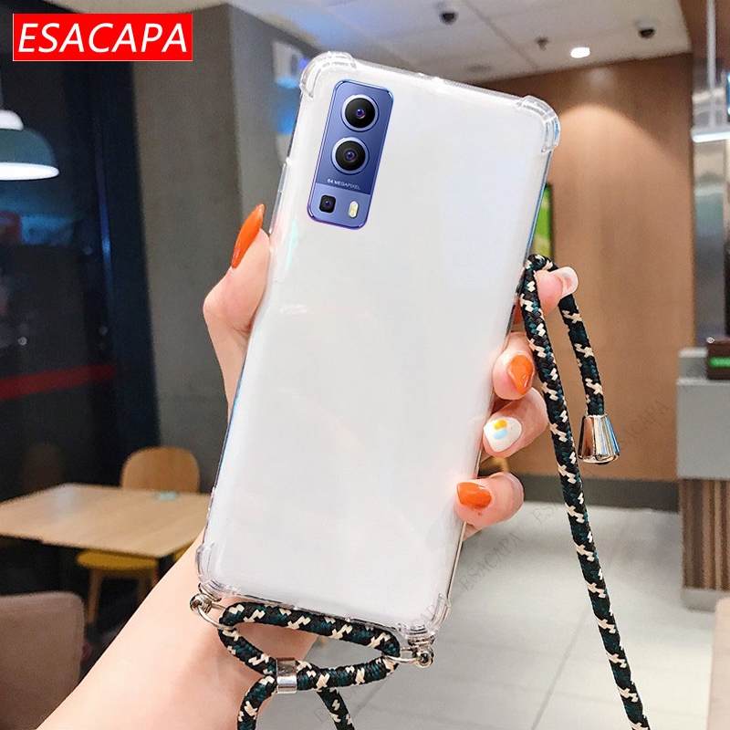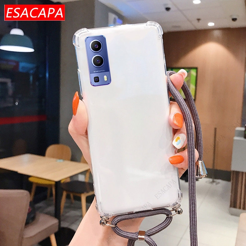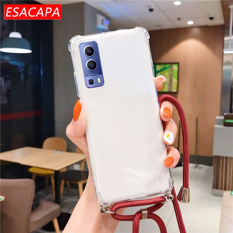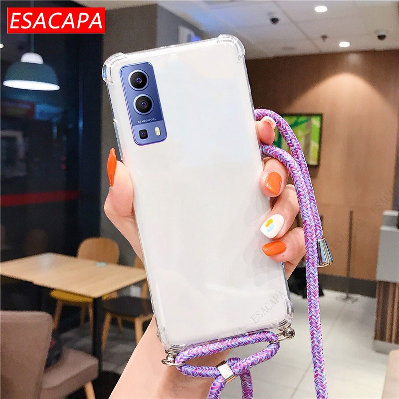 Противоударный мягкий чехол из ТПУ для Vivo Y72 чехол для телефона X60 Pro, ремешок на шею, шнур, веревка, прозрачный чехол для Vivo Y31 Y51A 2021 S7