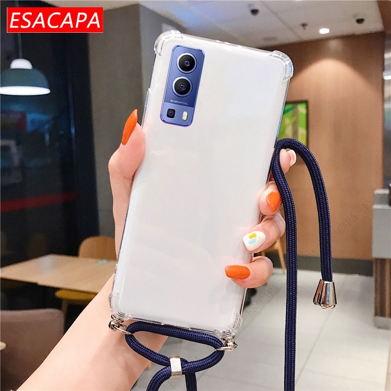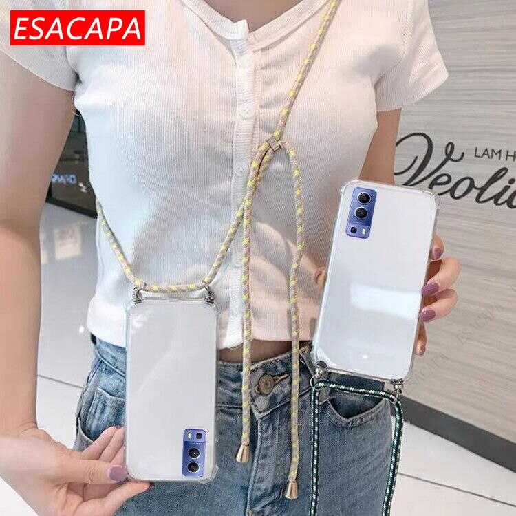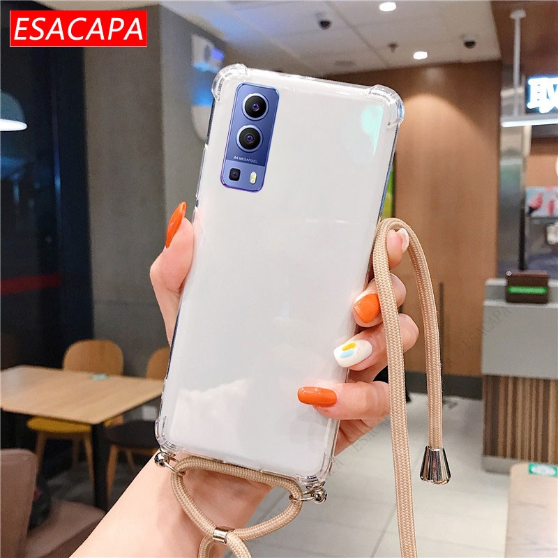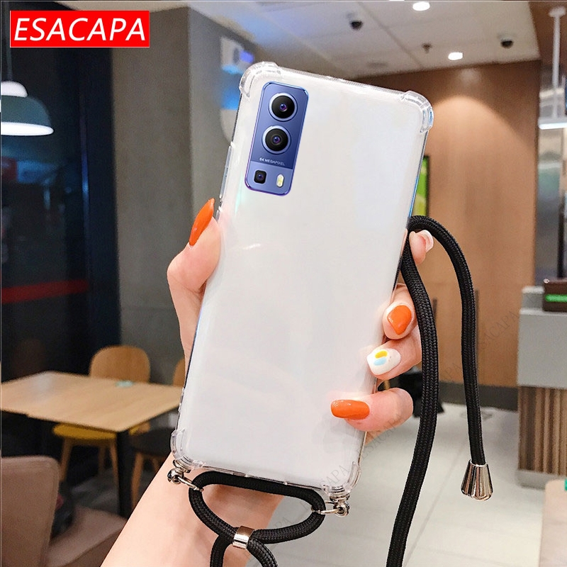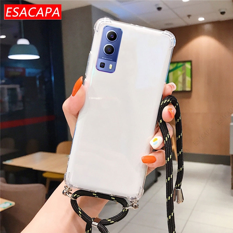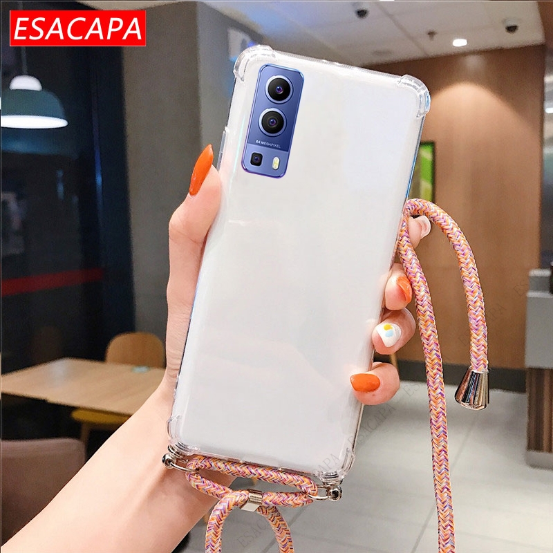 Противоударный мягкий чехол из ТПУ для Vivo Y72 чехол для телефона X60 Pro, ремешок на шею, шнур, веревка, прозрачный чехол для Vivo Y31 Y51A 2021 S7