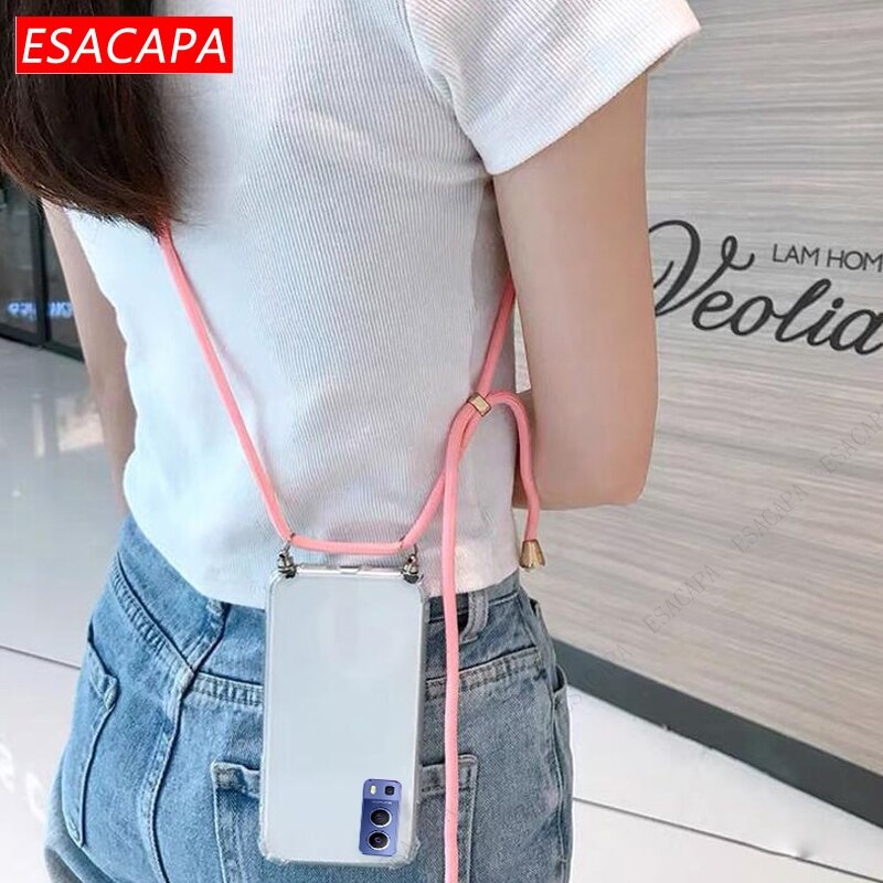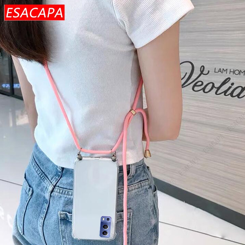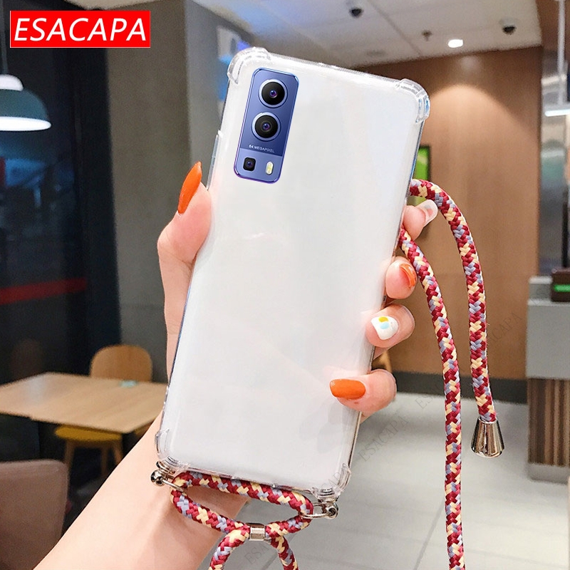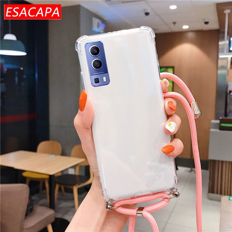Противоударный мягкий чехол для телефона из ТПУ для Vivo Y72 5G X60 Pro, шнурок, шнур, веревка, прозрачный чехол для Vivo Y31 Y51A 2021 S7