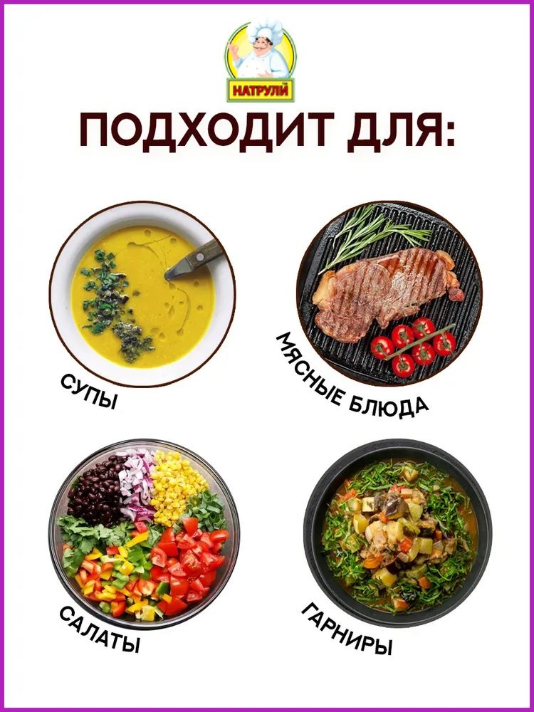 Назначение приправы: Универсальная, Для курицы, Для лазаньи, Для маринада, Для овощей, Для рыбы и морепродуктов, Для риса, макарон и пиццы, Для салатов, Для соусов, Для супов, Для сыра, Для тефтелей