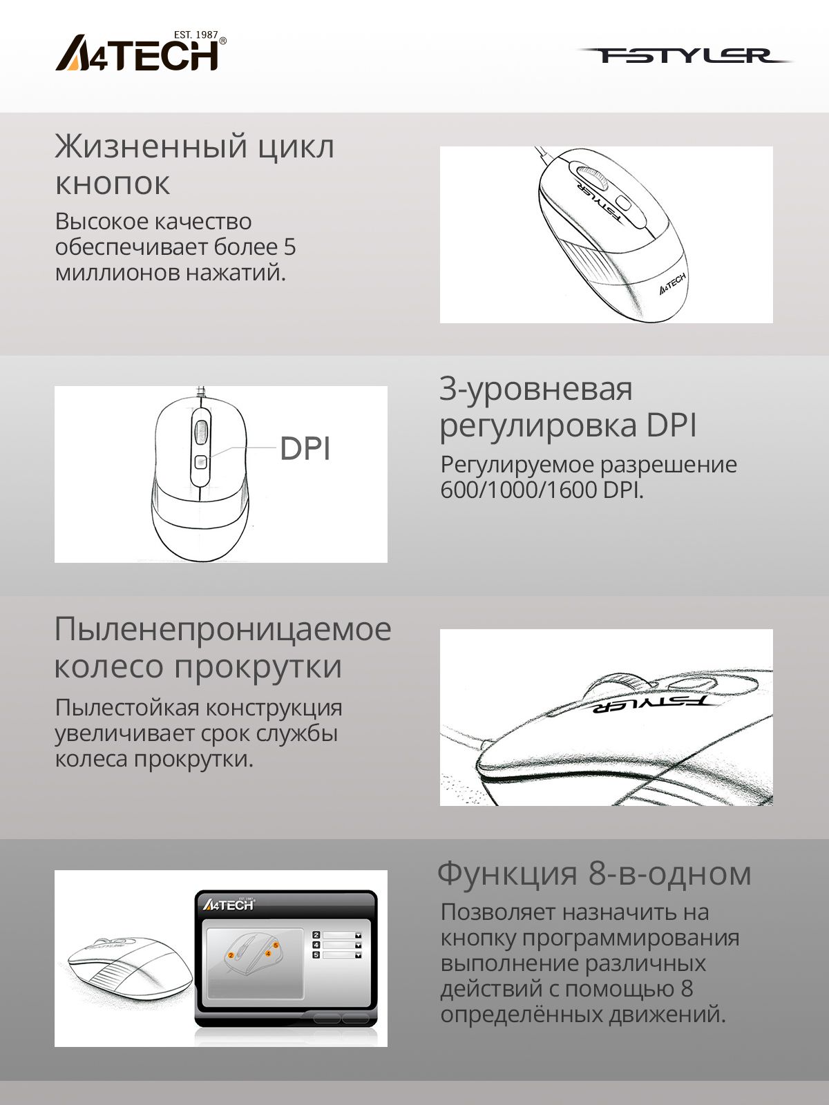 Проводная оптическая мышь A4Tech Fstyler FM10, 1600dpi, 4 кнопки