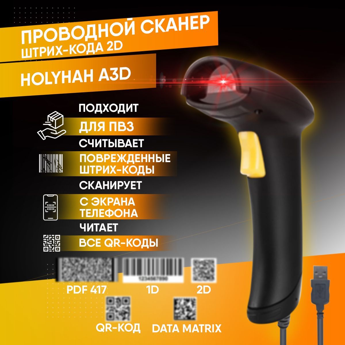 Проводной 2D сканер штрихкода Holyhah A3D (Маркировка, ЕГАИС, Честный знак, QR, Эвотор, Атол, Меркурий) для ПВЗ