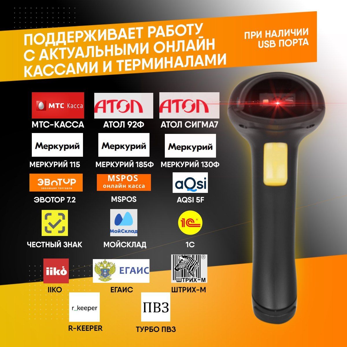 Сканер оснащен передовым лазерным модулем, который обеспечивает высокую скорость и точность считывания штрих-кодов. Благодаря этому вы сможете эффективно обрабатывать большие объемы товаров и сократить время, затрачиваемое на сканирование.Почему именно Holyhah A30D?/Особенности сканера 1)Сканер может использоваться с любыми актуальными онлайн кассами и терминалами, которые имеют USB порт. Среди поддерживаемых устройств: МТС-Касса, Атол 92ф, Атол Сигма 7, Меркурий 115, Меркурий 185Ф, Меркурий 130ф, Эватор 7.2, MSPOS, Акси 5ф и другие.