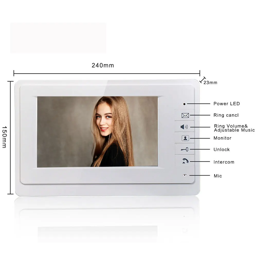 Этот Проводной видео-телефон двери Интерком Системы состоит из одного 7 дюймовый цветной tft-монитор и одна дверь камеры. Усовершенствованные чипы используются для высокой стабильной работы и имеют приятный внешний вид. Это ваш идеальный выбор для использования в виллах с 700 линиями CMOS камеры, которые могут достичьМониторинг, двусторонний Интерком и разблокировка. Вы также можете следить за внешним изображением даже без нажатия кнопки монитора на внутреннем устройстве.