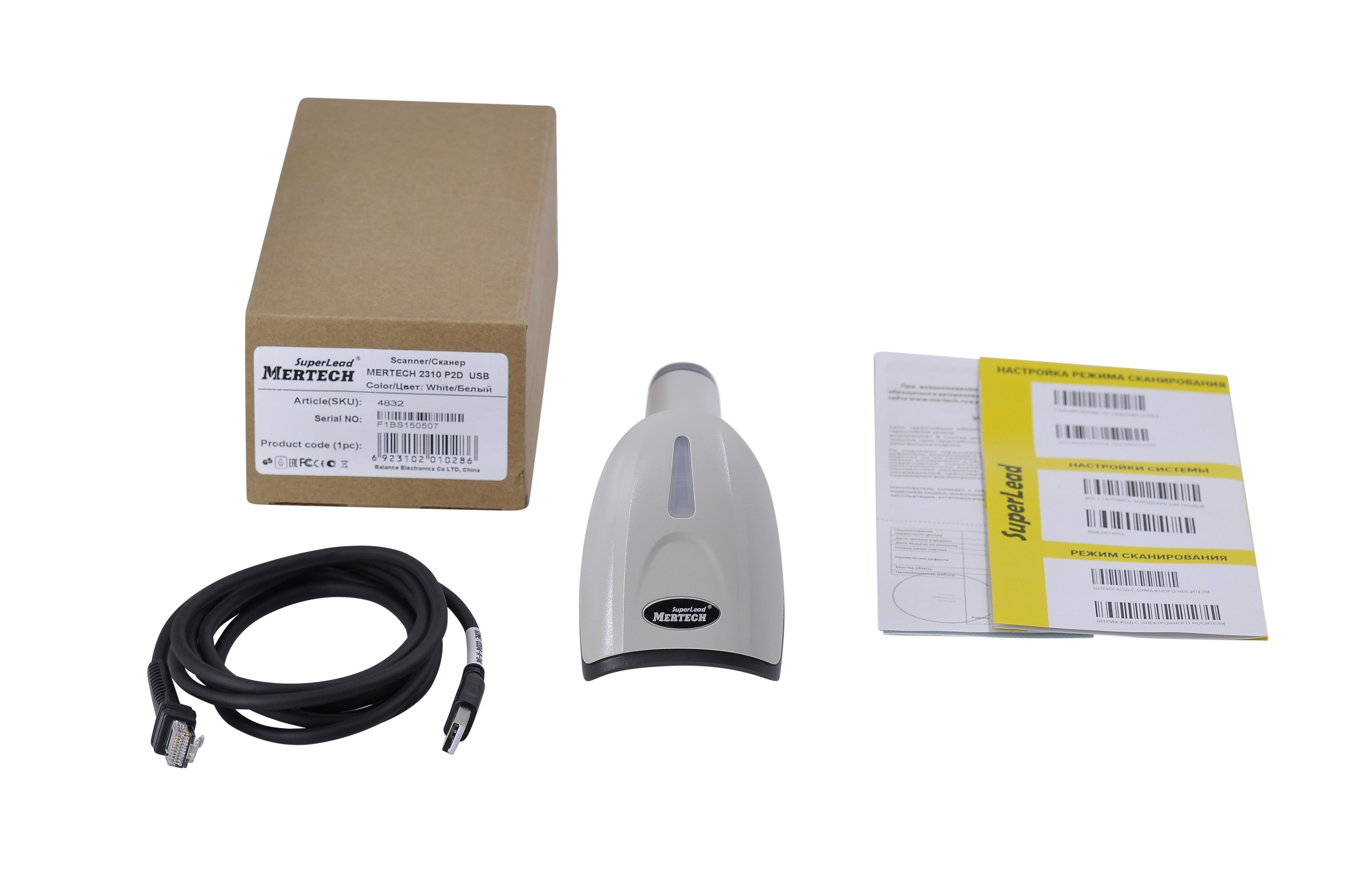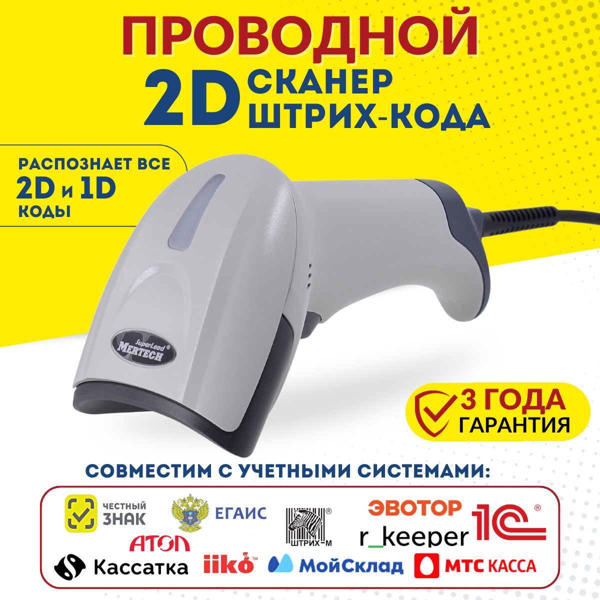 Описание: Стильный, надежный и удобный проводной ручной сканер штрих кода MERTECH 2310 P2D SUPERLEAD USB white
