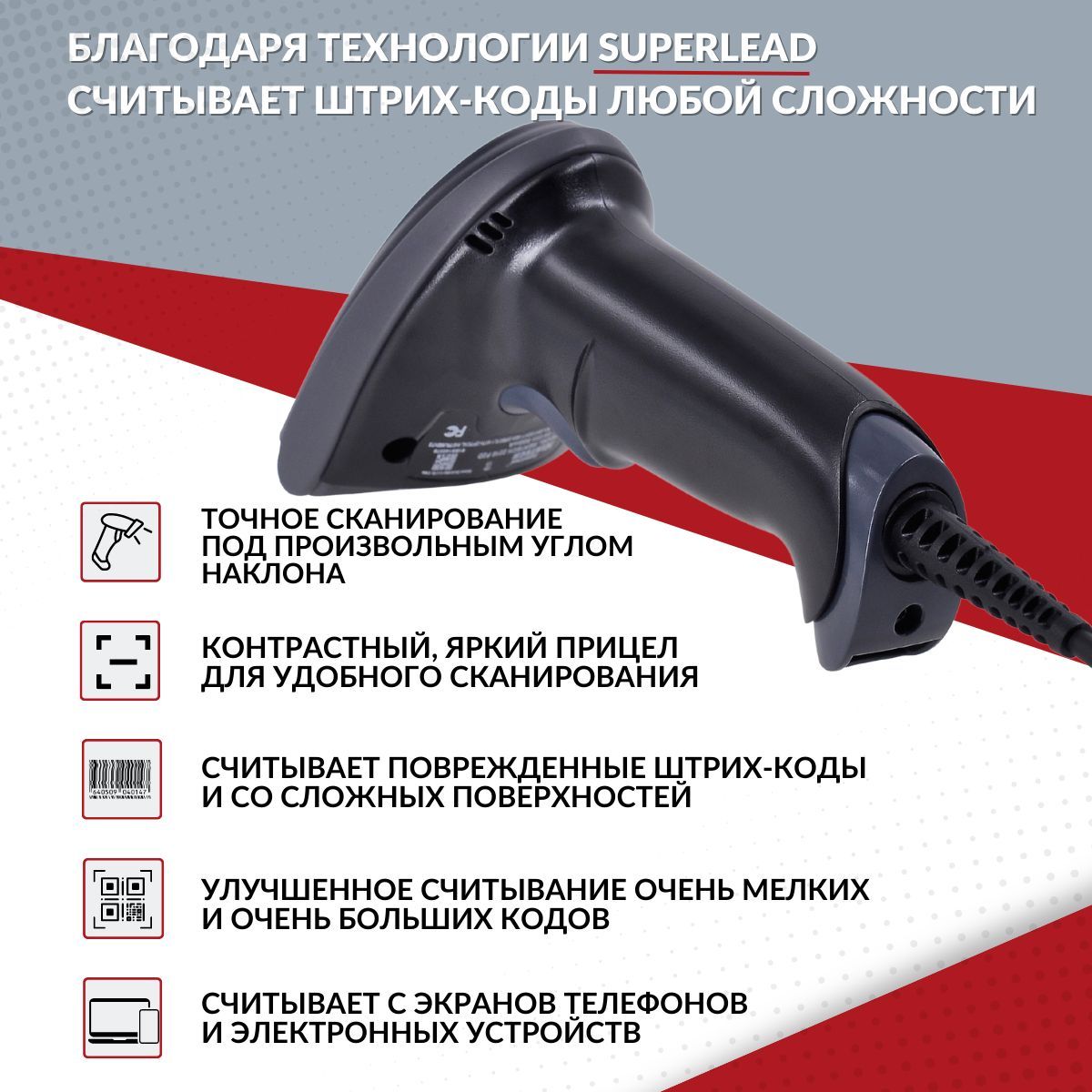 Для сканирования этикеток применяется улучшенная технология SUPERLEAD.