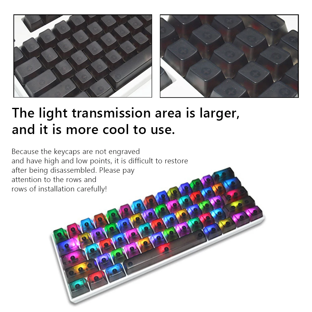 104 клавиши Прозрачные колпачки из АБС-пластика Механическая клавиатура OEM-профиль Без гравировки Подсветка Пользовательская пустая Прозрачная крышка для клавиш Совместимость с переключателем Cherry MX для универсальной механической клавиатуры 61/87/104/108 клавиш
