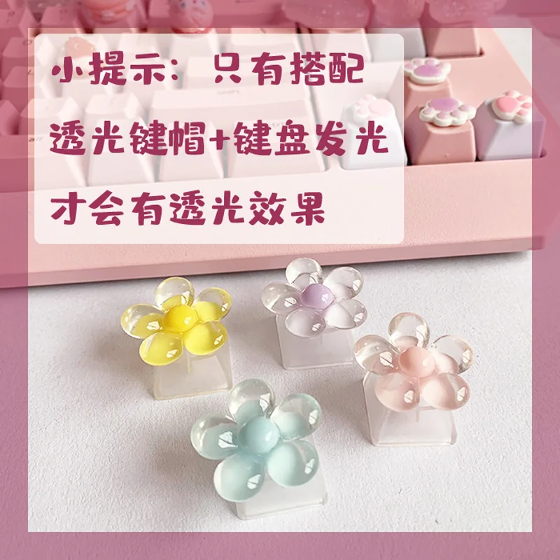 Прозрачные брелки с подсветкой, персонализированные брелки с милым цветком, брелки с белым/розовым основанием, прозрачные светильник, самодельные брелки