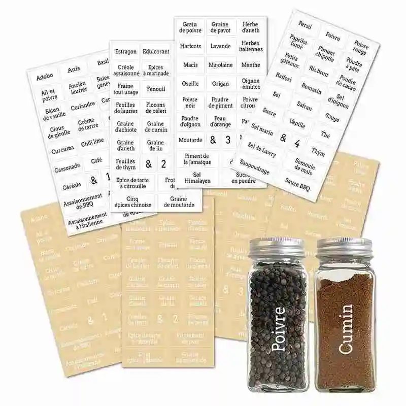 Прозрачные наклейки с французской этикеткой, водонепроницаемые прозрачные наклейки с изображением специй в банке, 208 шт., наклейки с изображением специй в бутылке, Q5K6