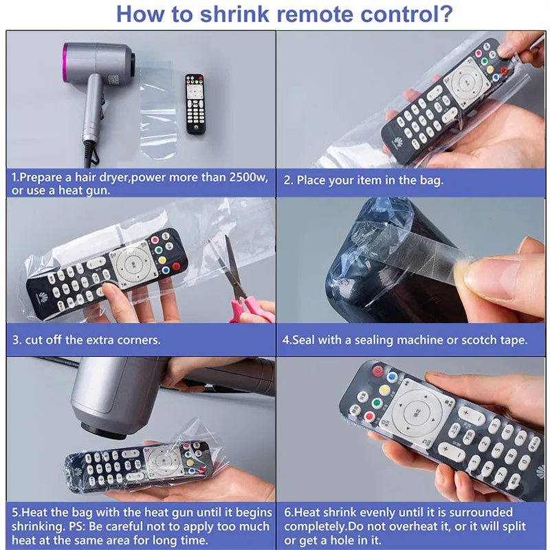 Прозрачные термоусадочные пакеты для пульта дистанционного управления
