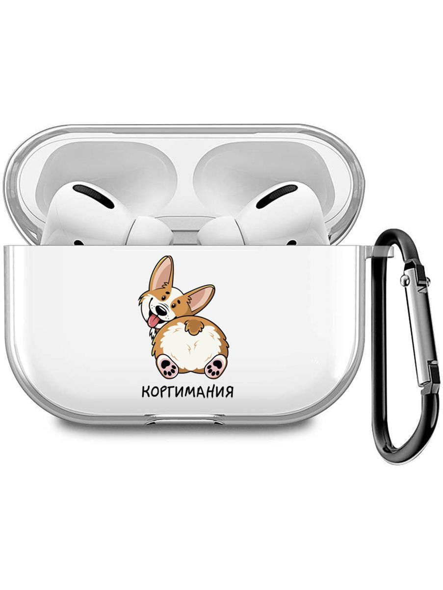 Прозрачный чехол для наушников AirPods Pro / на АирПодс Про силиконовый с 3D принтом "CorgiMania"