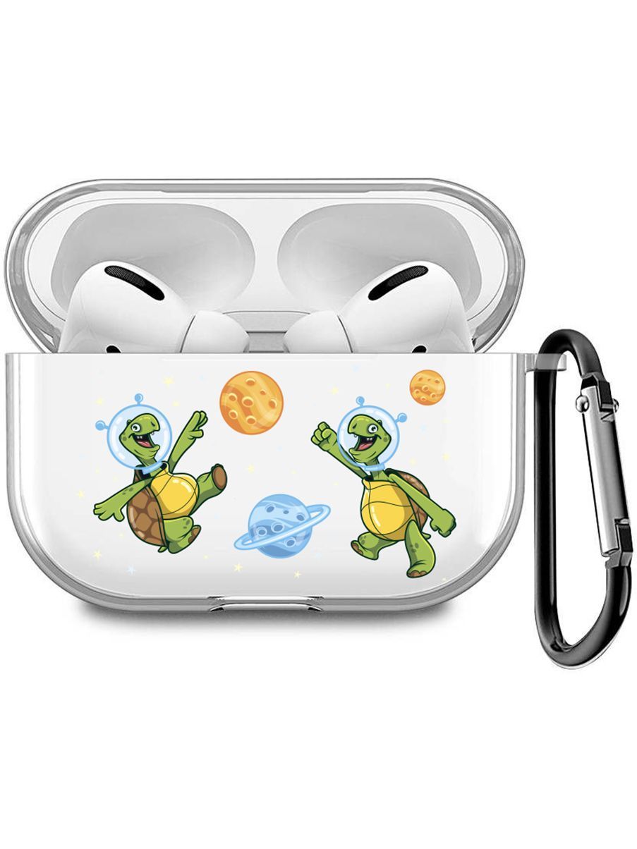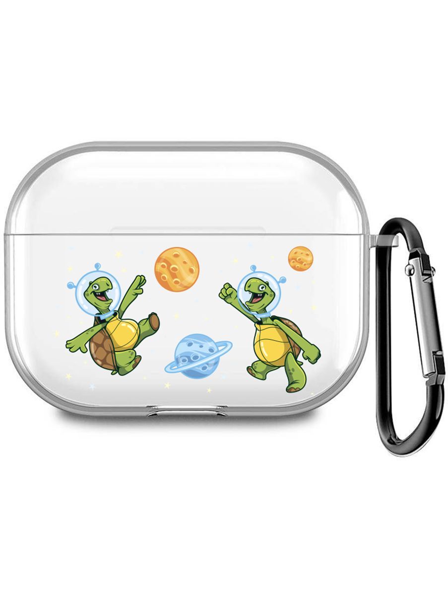 Прозрачный чехол для наушников AirPods Pro / на АирПодс Про силиконовый с 3D принтом "CosmoTurtles"