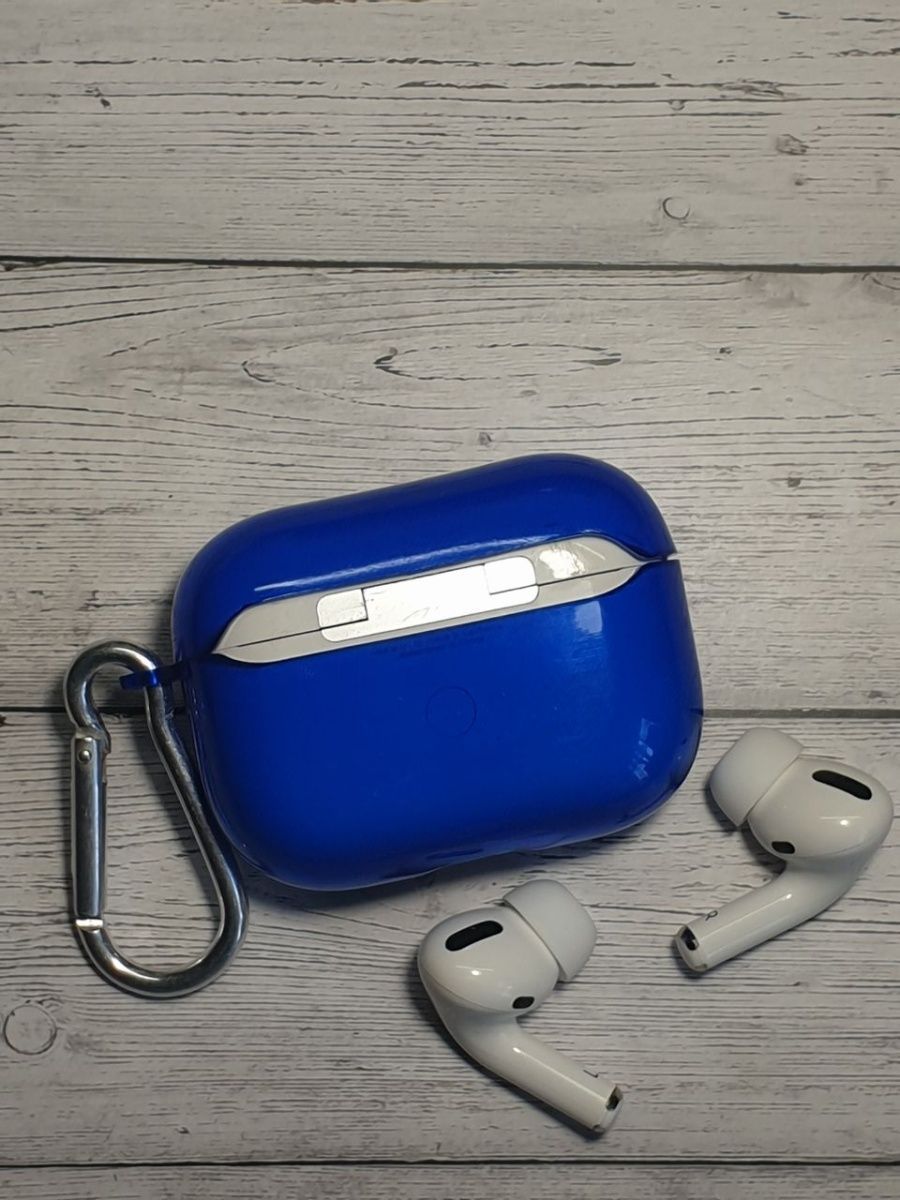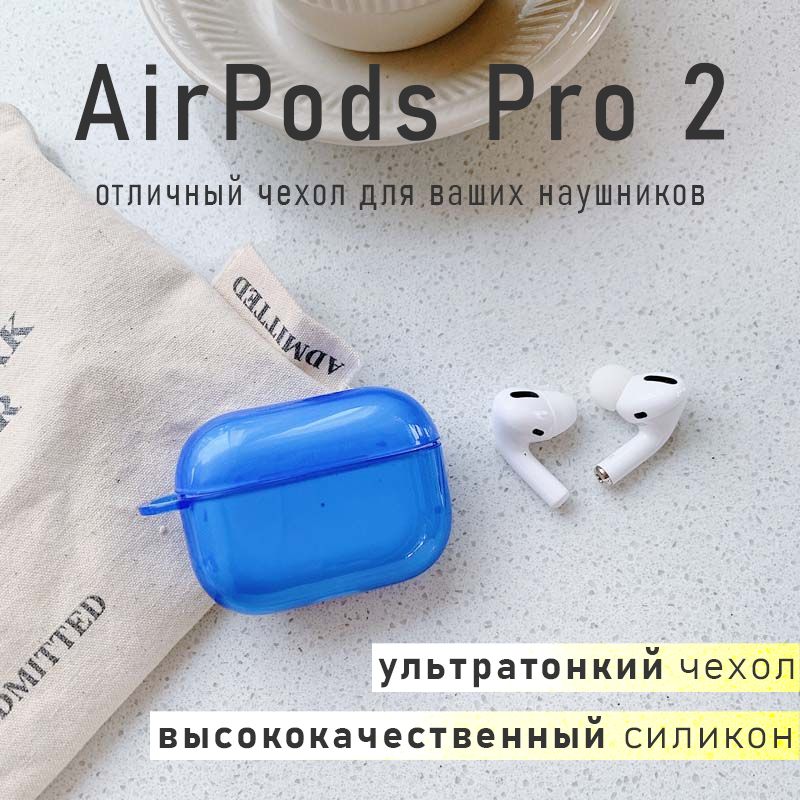 Прозрачный чехол KRISTANAM для наушников Apple AirPods Pro 2 (2nd generation) / кейс (футляр) для Apple AirPods Pro2 с карабином / синий