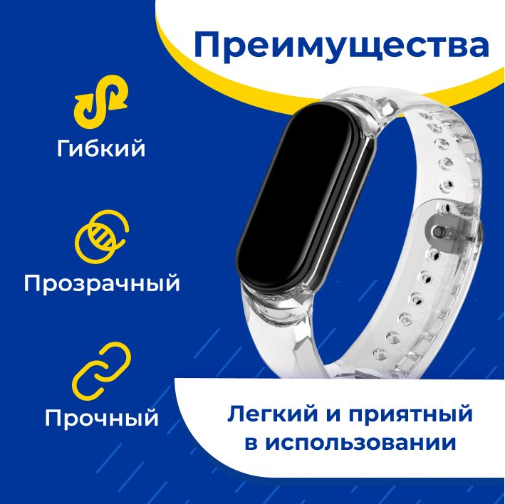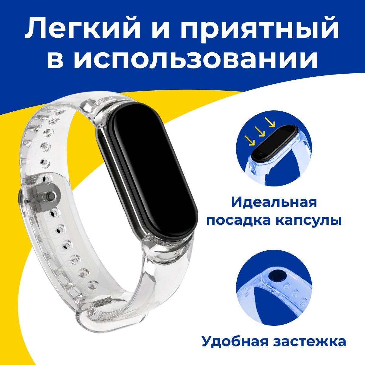 Прозрачный cиликоновый спортивный ремешок на руку для умного смарт браслета Xiaomi Mi Band 3 и 4 / Резиновый сменный ремень на фитнес трекер Сяоми Ми Бэнд 3 и 4, Прозрачный